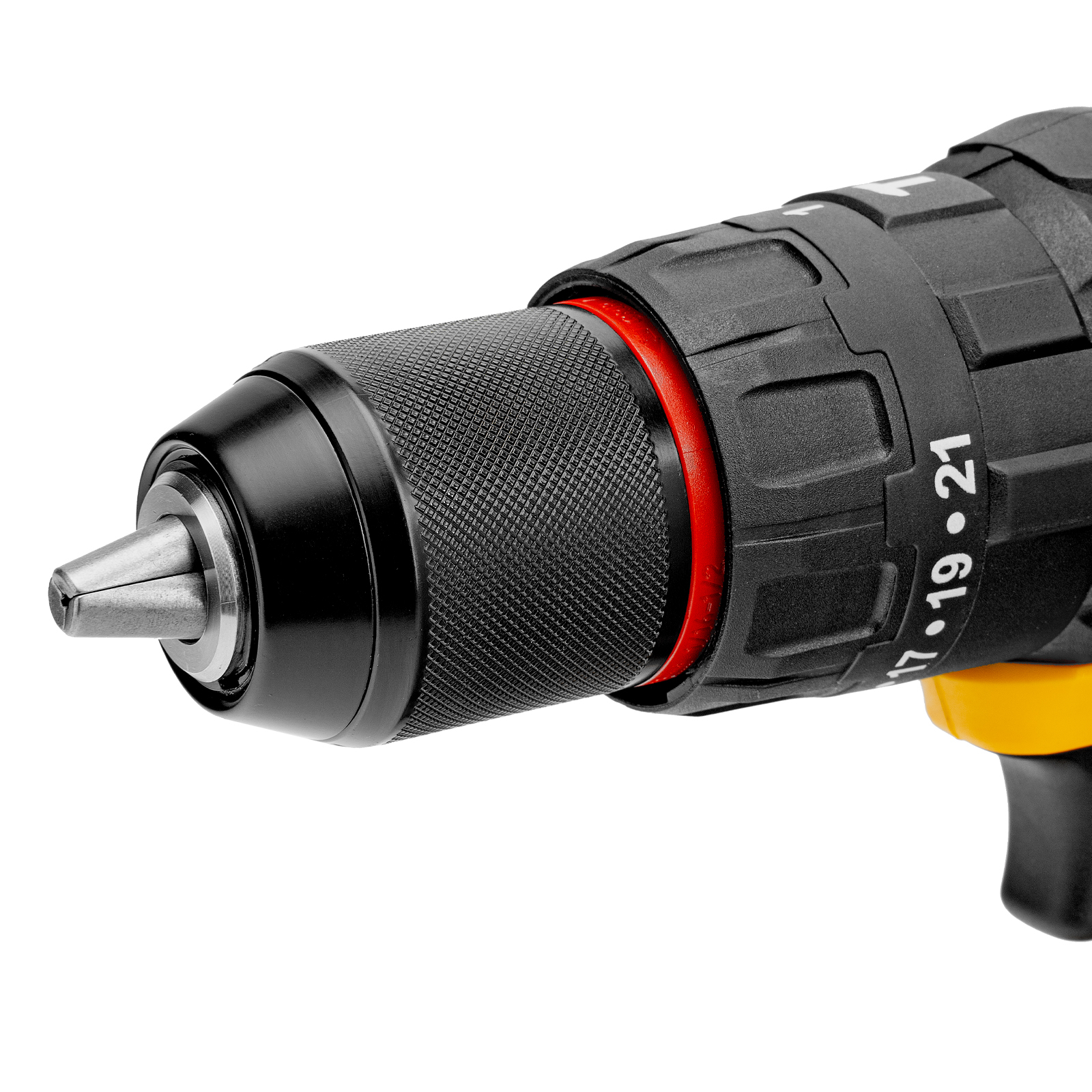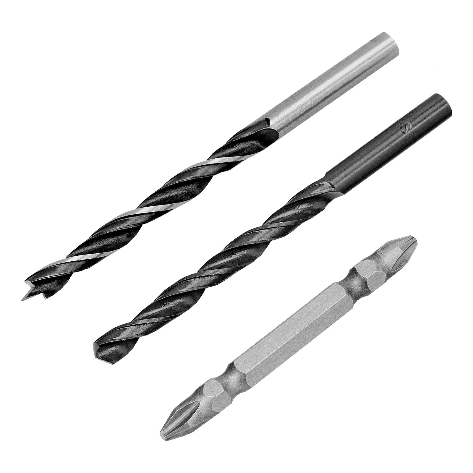 - Полная комплектация — дрель-шуруповерт поставляется с 2 аккумуляторами, зарядным устройством, битой, сверлом по дереву и сверлом по металлу, что позволяет сразу приступить к работе.