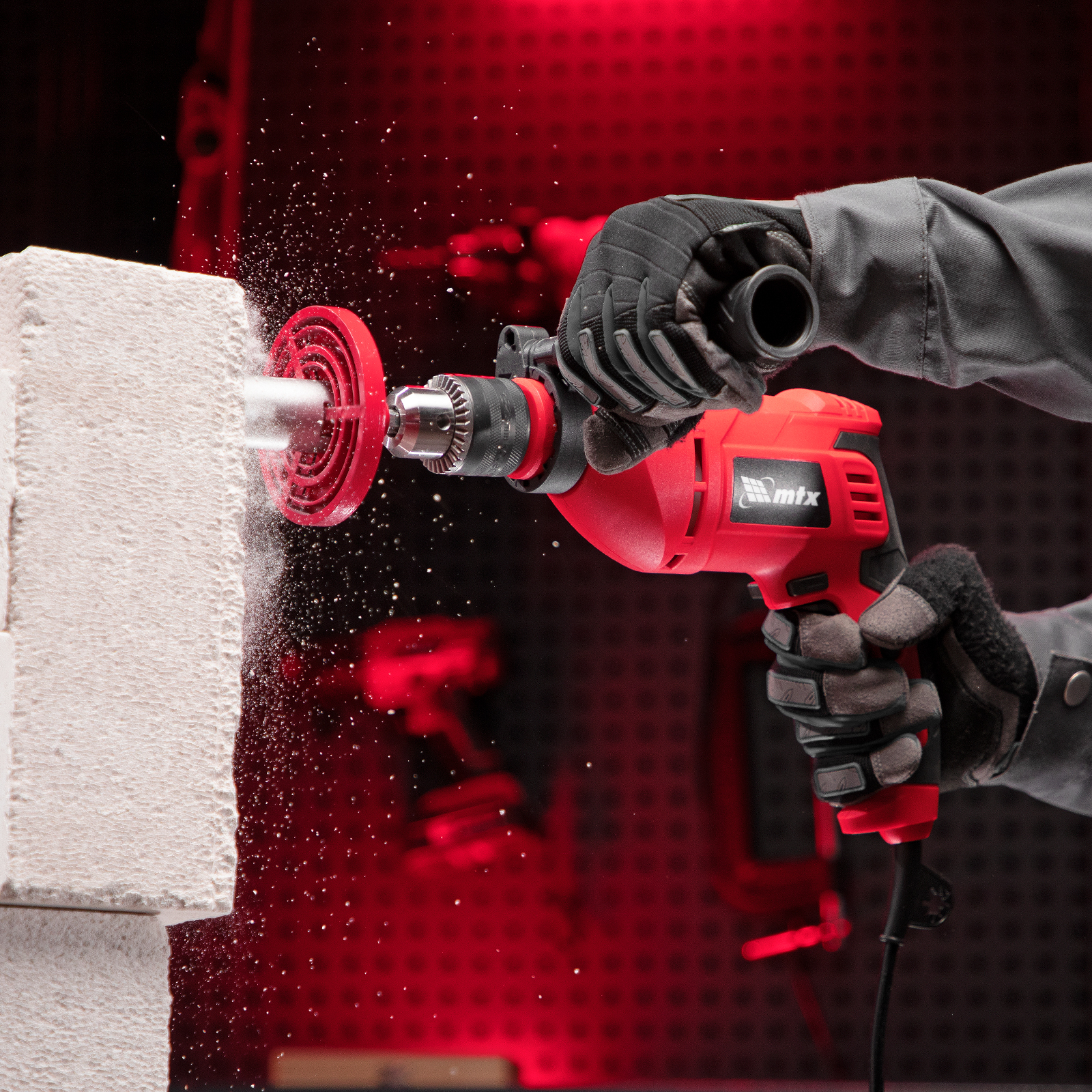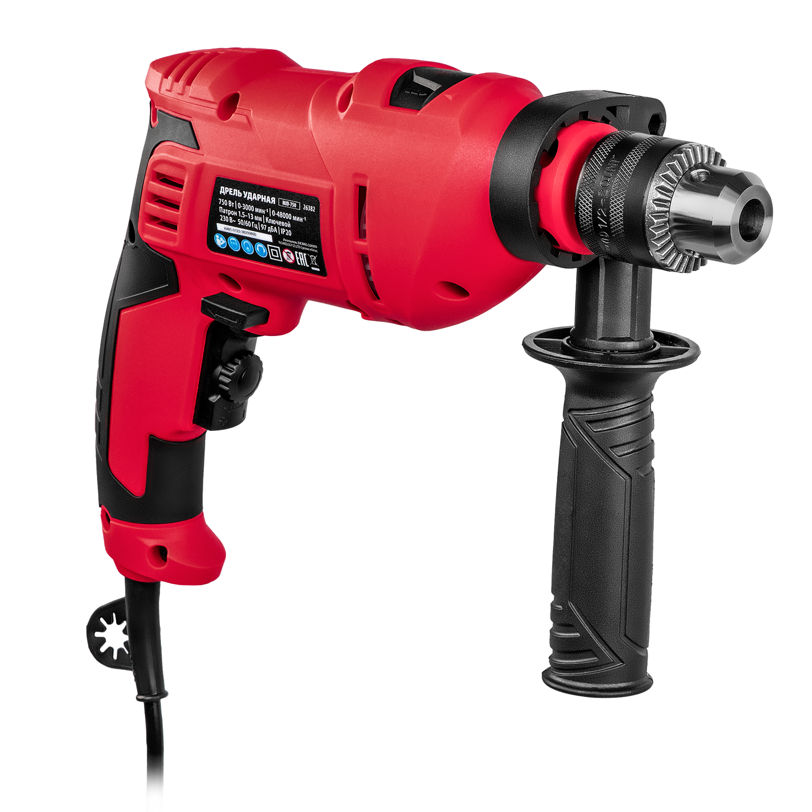 Дрель ударная MTX MID-750 26382 мощностью 750 Вт предназначена для сверления и сверления с ударом отверстий в древесине (до 25 мм), металле (до 10 мм), бетоне (до 13 мм). Ключевой патрон совместим со сверлами диаметром от 1,5 до 13 мм. Частота вращения плавно меняется в зависимости от степени нажатия на кнопку пуска, что облегчает работу с материалами разной плотности.
