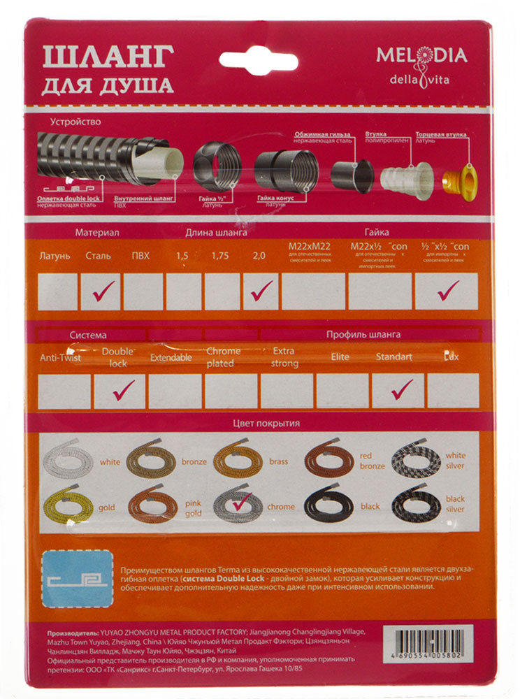 В комплекте с душевым шлангом идет упаковка блистер, что обеспечивает сохранность товара при транспортировке.