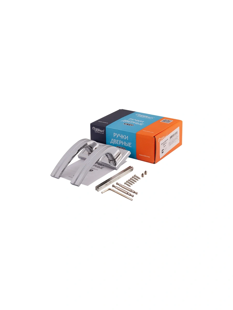 Дверная ручка НОРА-М 106К AL хром 15915 для межкомнатной двери отлично смотрится в коммерческих и частных зданиях, квартирах и офисах. При выборе дверных ручек для дверей необходимо думать не только о функциональности, но и о внешнем виде. Дверные ручки на квадратной розетке обладают эргономичной формой и используются как ручки для межкомнатных дверей и как ручки для входной двери.