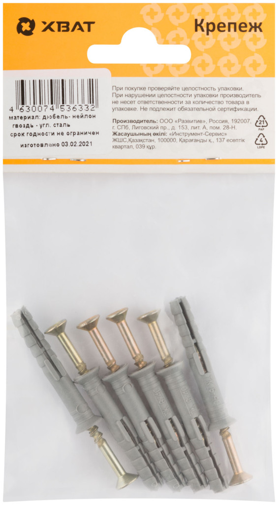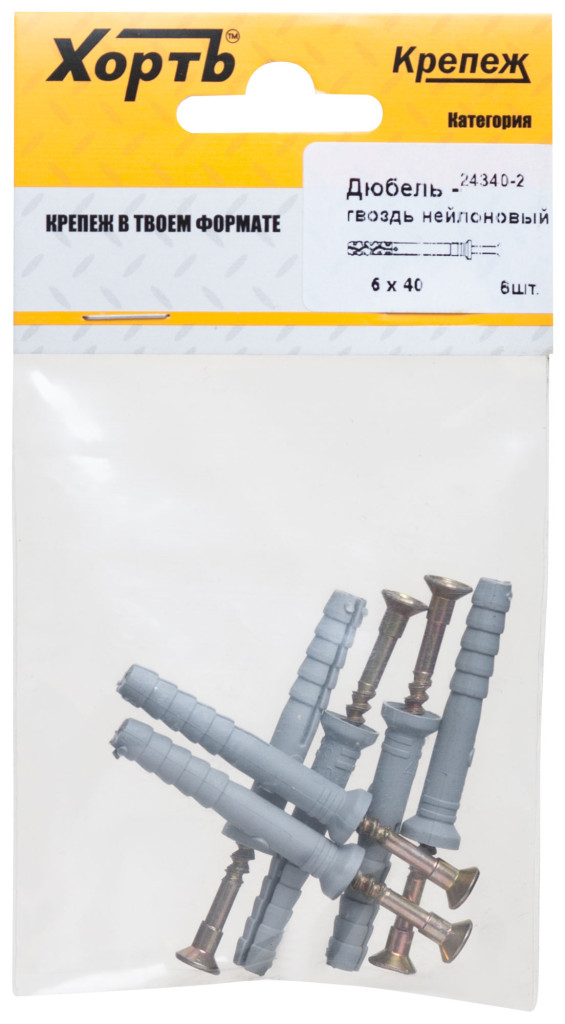 Дюбель-гвоздь полипропиленовый 6 х 40 (фасовка 6 шт.) 24340-2