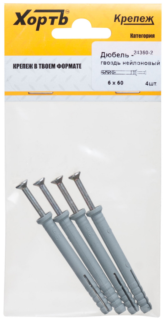 Дюбель-гвоздь полипропиленовый 6 х 60 (фасовка 4 шт.) 24360-2