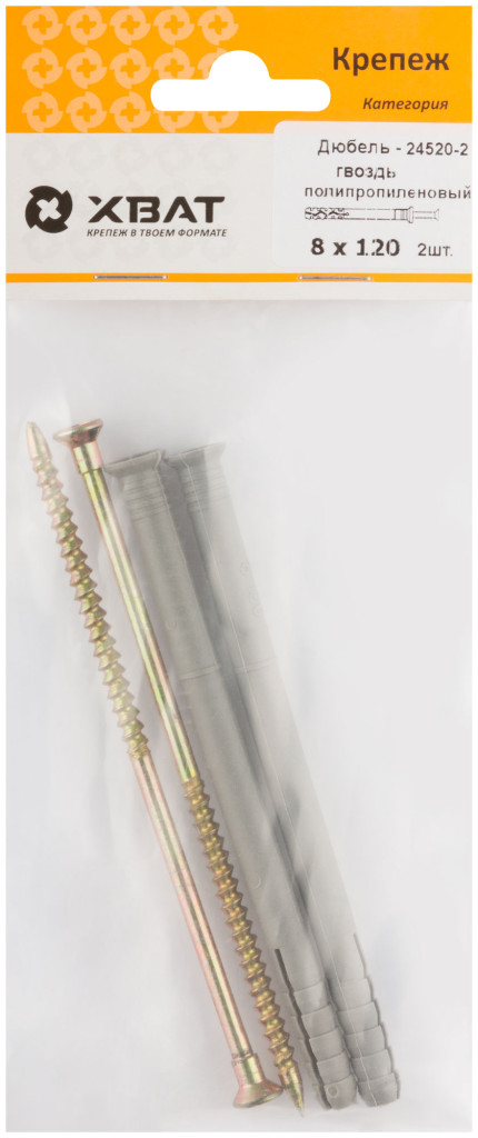 Дюбель-гвоздь полипропиленовый 8 х 120 (фасовка 2 шт.) 24520-2