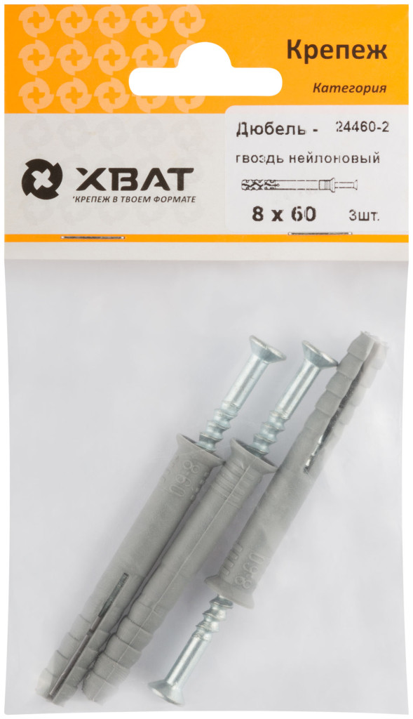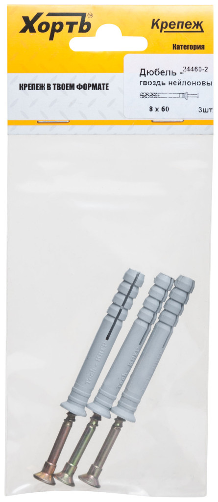 Дюбель-гвоздь полипропиленовый 8 х 60 (фасовка 3 шт.) 24460-2