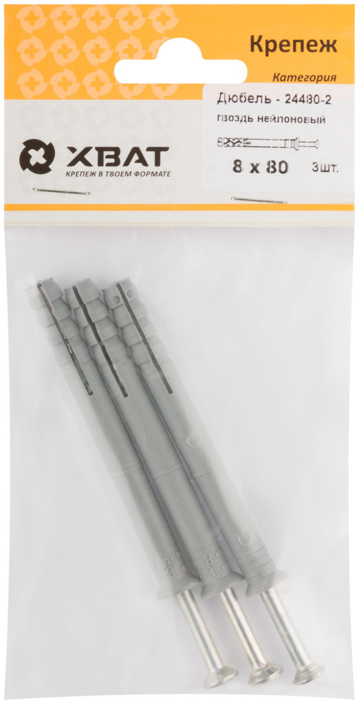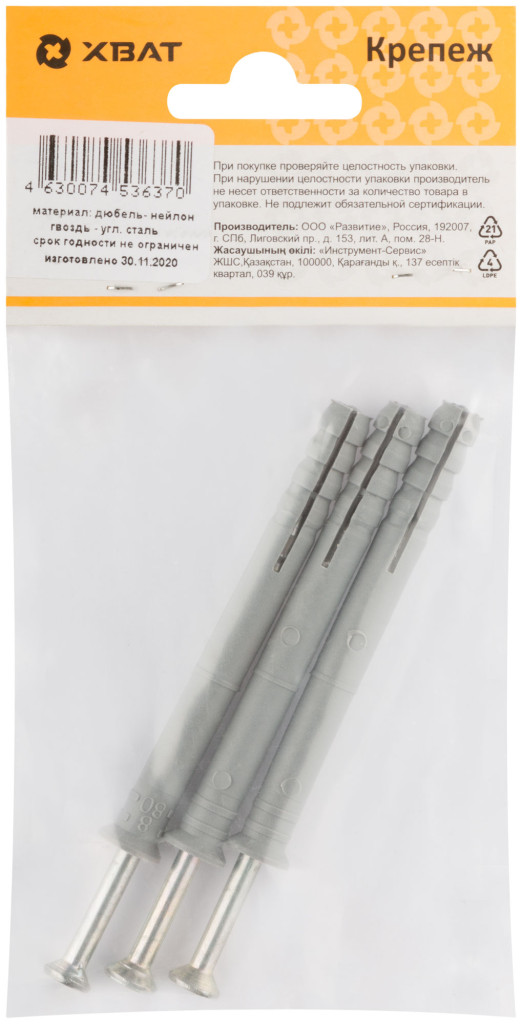 Дюбель с потайным бортиком, шуруп с потайной головкой. Дюбель изготовлен из полипропилена, шуруп - из стали с