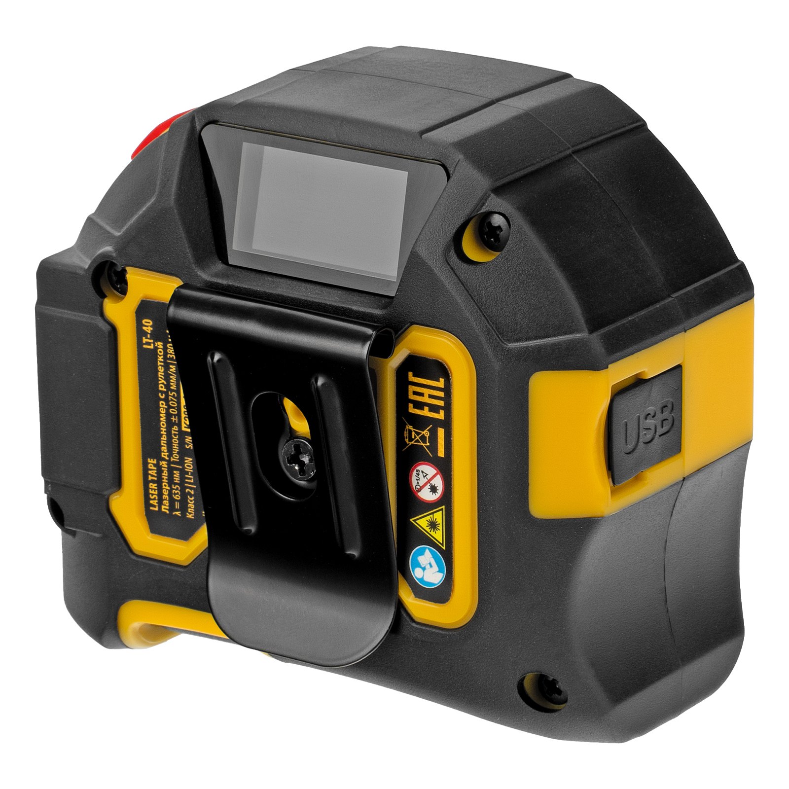 Лазерный дальномер с рулеткой Denzel LT-40 38020 — высокоточный многофункциональный инструмент для профессионалов и любителей. Предназначен для измерения расстояний от 0,2 до 40 метров при погрешности 0,075 мм/м, а также для определения площади и объема помещения. В инструмент интегрирована гибкая механическая рулетка длиной 5 метров, повышающая точность измерений. Li-Ion аккумулятор емкостью 380 мА·ч обеспечивает длительное время работы.
