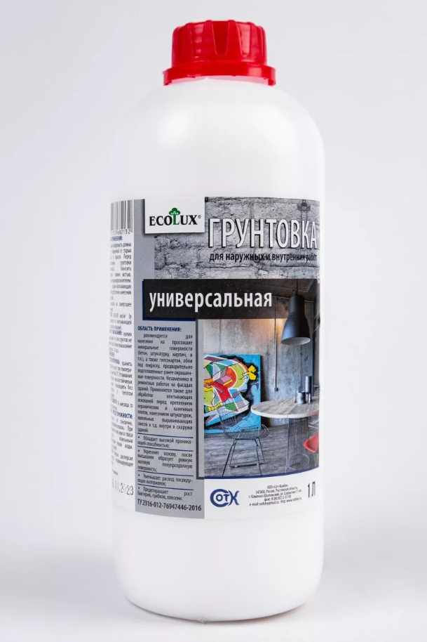 Грунтовка Ecolux УНИВЕРСАЛЬНАЯ обладает высокой проникающей способностью;