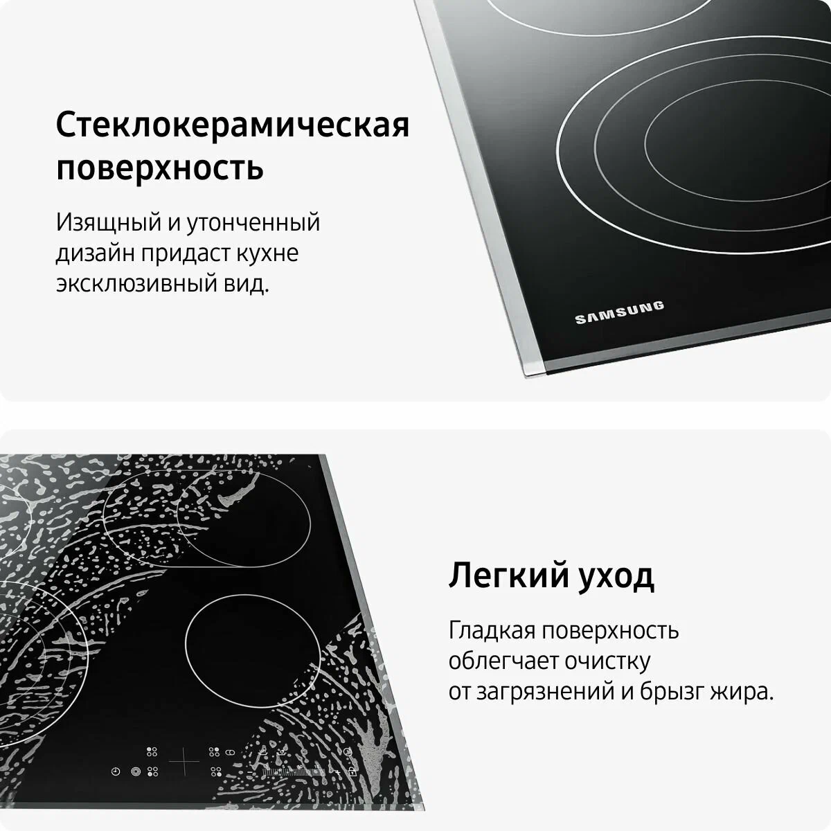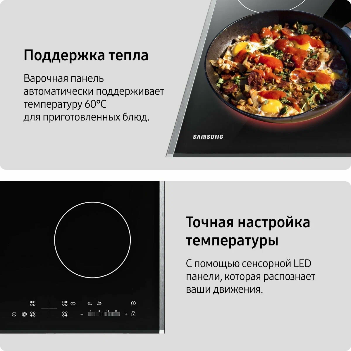 Электрическая варочная поверхность Samsung NZ64T3536DK/WT - это встраиваемая варочная панель, которая станет незаменимым помощником на вашей кухне. Панель оснащена четырьмя конфорками HiLight, которые обеспечивают быстрый нагрев и равномерное распределение тепла. Две конфорки имеют диаметр 140 мм и 220 мм, что позволяет готовить различные блюда на разных уровнях мощности. Поверхность панели выполнена из стеклокерамики, что обеспечивает высокую прочность и долговечность. Материал легко очищается от загрязнений и не подвержен коррозии. Панель оснащена расширенными зонами нагрева, включая овальную зону нагрева и зону HiLight. Это позволяет готовить блюда в посуде различной формы и размера. Сенсорное управление с цифровым дисплеем и двухслойной рамкой обеспечивает удобство и простоту использования. Панель оснащена таймером конфорок, который автоматически выключает конфорку по истечении заданного времени. Безопасность использования обеспечивается кнопкой блокировки панели и защитным отключением конфорок. Варочная панель имеет размеры 59x50.5 см и предназначена для встраивания в столешницу толщиной не менее 20 мм. Размеры ниши для встраивания составляют 56x49 см. В комплекте с панелью поставляется инструкция и электрическая варочная панель.