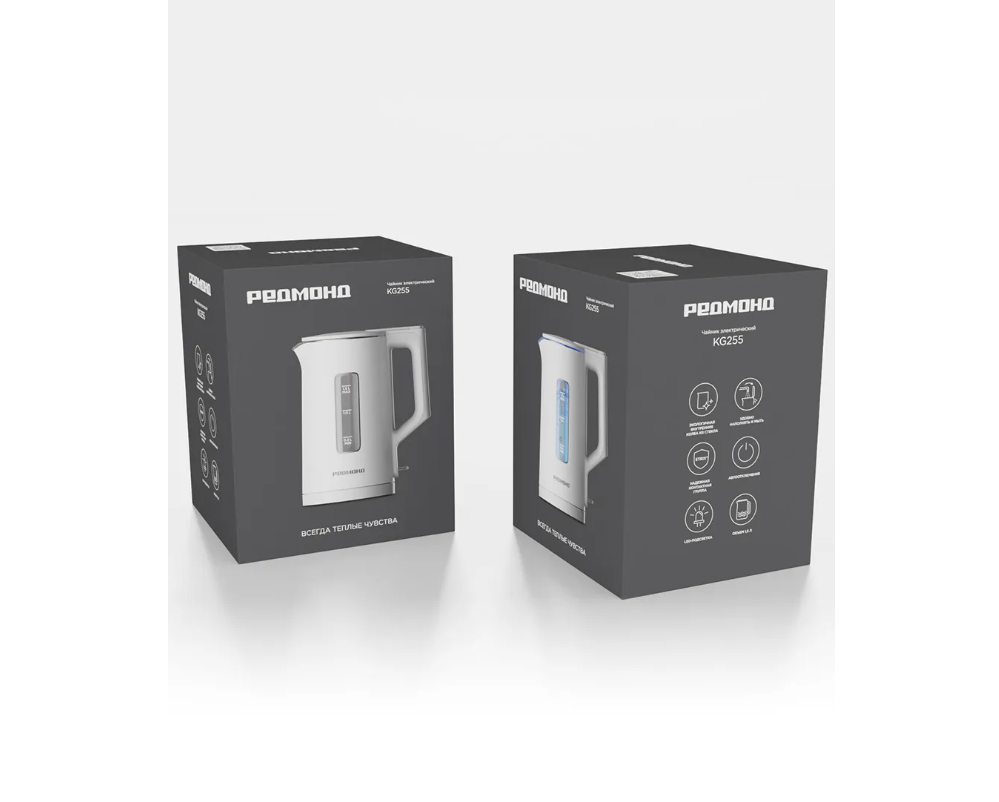 Чайник РЕДМОНД KG255 — современный прибор в белом цвете для кипячения воды объемом 1,5 л. Экологичная внутренняя колба из стекла не впитывает запахов, устойчива к коррозии и воздействию высоких температур. Благодаря широкой горловине чайник удобно наполнять и мыть. Надежная контактная группа гарантирует длительный срок эксплуатации — минимум 10 лет. Прибор оснащен системой защиты и автоматически отключится при закипании, снятии с подставки и отсутствии воды. Экологичная внутренняя колба Внутренняя колба сделана из прочного жаропрочного стекла. Материал безвреден для здоровья, не влияет на вкус и запах воды и выдерживает регулярные нагревания. Широкое открытие крышки Крышка открывается шире, чем у других моделей чайников. Очистить KG255 изнутри от накипи и других загрязнений очень просто: достаточно просто вымыть внутренние стенки мягкой губкой под проточной водой. Надежная контактная группа Долговечная контактная группа от британского производителя Strix обеспечивает не меньше 10 лет интенсивного использования. Контроллер расположен в центре подставки, за счет чего чайник можно вращать на 360°: будет удобно пользоваться как правшам, так и левшам. Автоотключение Благодаря чувствительным датчикам контактной группы использование чайника абсолютно безопасно. Автоматическое отключение сработает в момент закипания, снятия с подставки или если в приборе слишком мало воды. LED-подсветка Приятная голубая подсветка загорится сразу же, как только вы опустите переключатель, и погаснет после закипания. Она подсвечивает чайник изнутри, чем не только украшает интерьер кухни, но и помогает контролировать работу прибора даже в темноте. Объем 1,5 л Одного нагревания 1,5 л воды хватит, чтобы приготовить утренний кофе для всей семьи и залить кашу-пятиминутку для сытного завтрака. Не придется несколько раз кипятить воду.