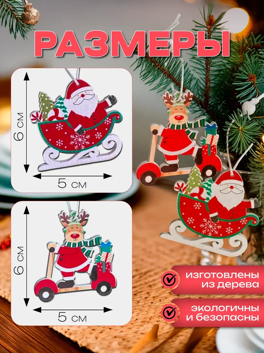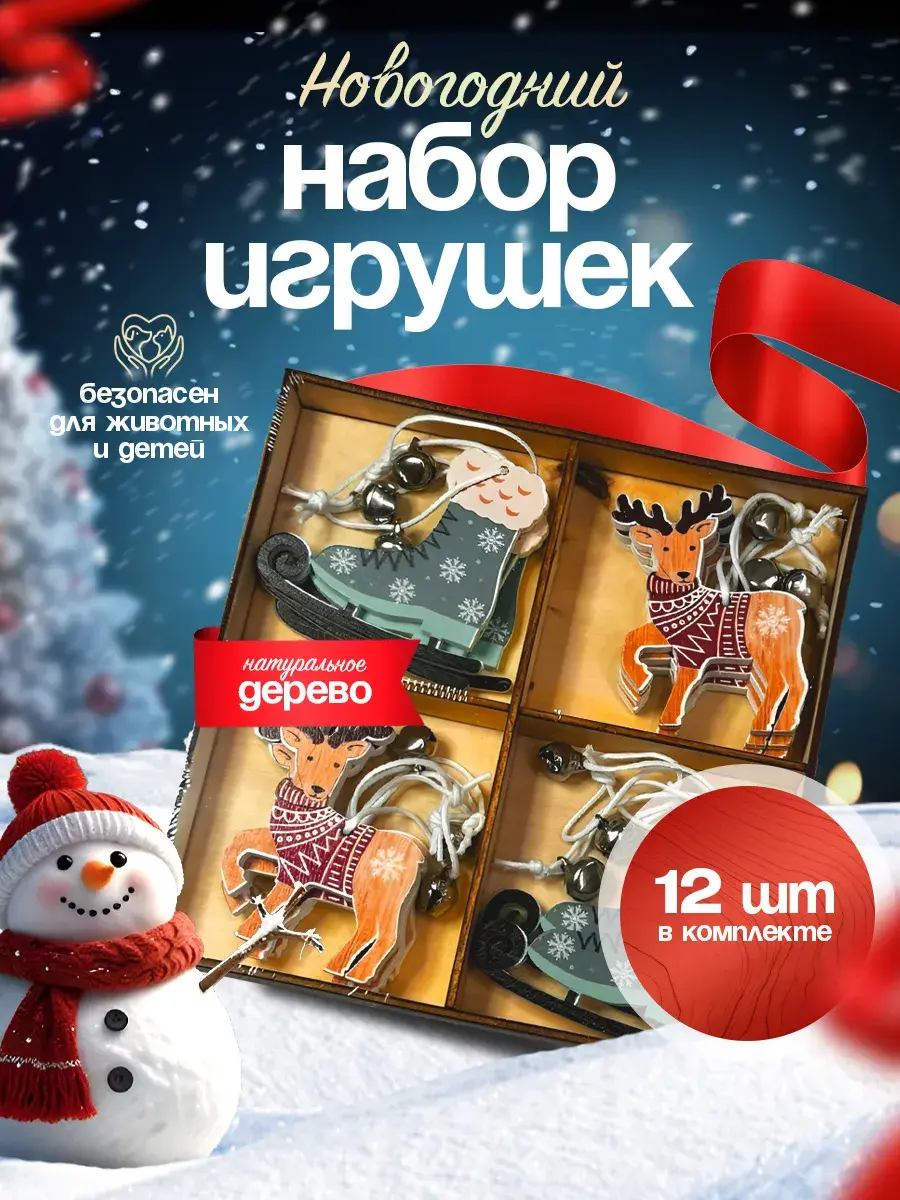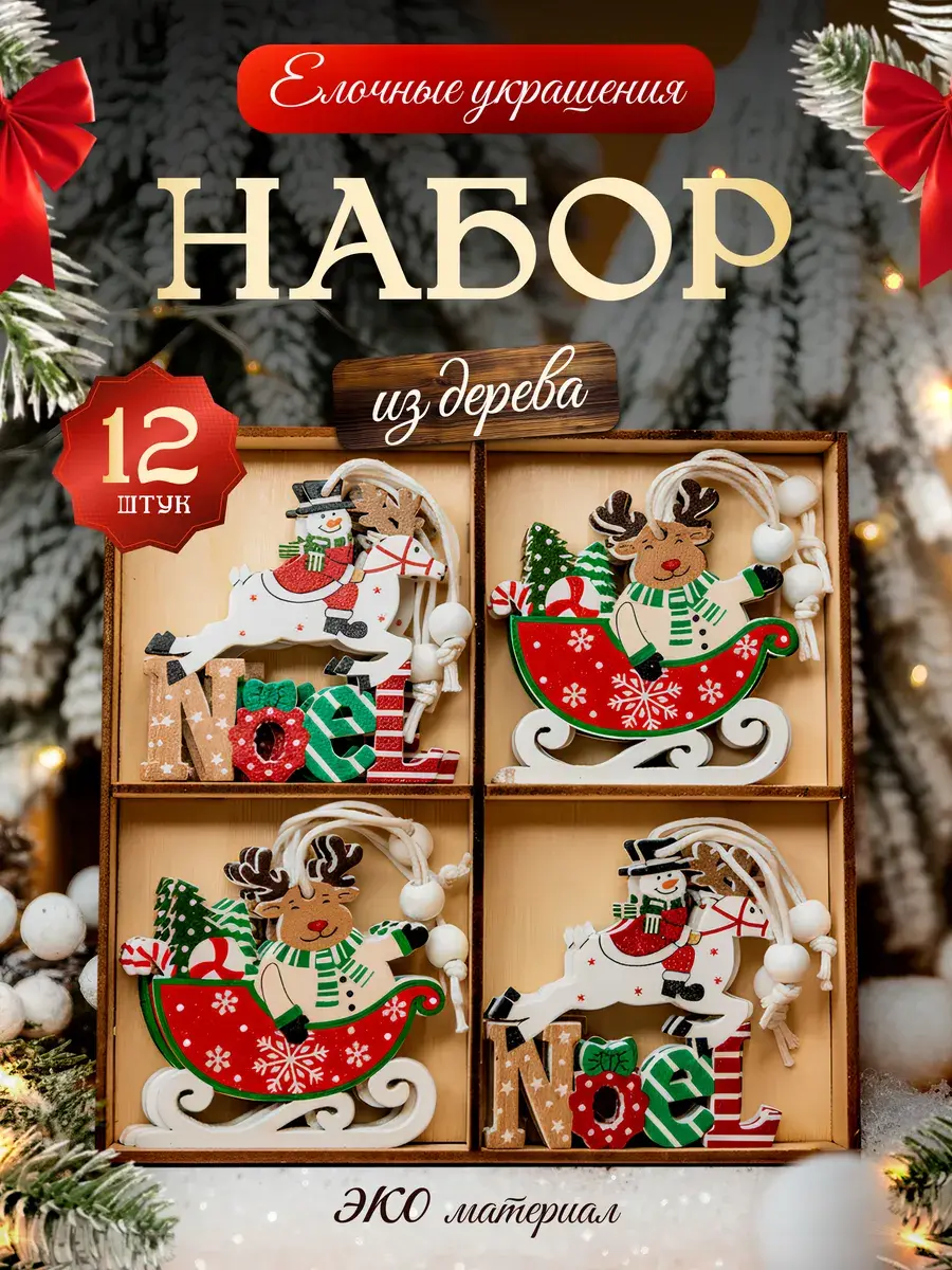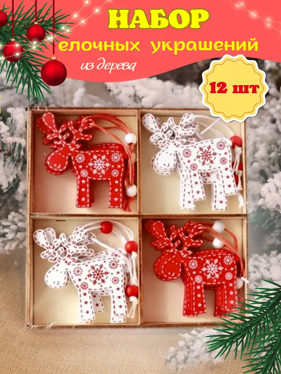 Выбираете качественные новогодние украшения с оригинальным дизайном? Тогда вам понравятся деревянные елочные игрушки от нашего бренда! Набор из 12 изделий станет частью декоративной интерьерной композиции. Его можно приобрести в качестве подарка для родных, друзей или коллег. Фигурные игрушки имеют джутовые веревочки, позволяющие без труда закрепить из на ветвях хвойного деревца. Они поставляются в удобной для хранения фирменной упаковке. Изделия из натуральной древесины украшены ярким детализированным рисунком в традиционных рождественских цветах. Они не утяжеляют ветки и замечательно смотрятся на елке. Такие новогодние аксессуары можно использовать для оформления тематической праздничной фотозоны. Они дополнят интерьерный декор дома, в квартире или на даче