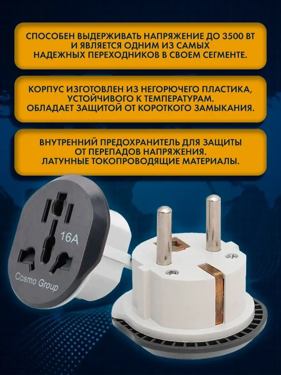 Универсальный переходник для розетки : мгновенное решение для подключения любых электрических приборов во всем мире! Если вы путешествуете или просто хотите использовать зарубежные электроприборы у себя дома, наша вилка электрическая для обеспечения подключения в электрические сети евростандарта станет незаменимым помощником. Он позволяет подключать любые электрические приборы с разъемами большинства стран к европейской розетке без каких-либо проблем. Наш переходник с китайской вилки совместим со всеми типами розеток, включая А, В, С, F, G, I, что делает его идеальным выбором для использования в любой стране. Вы можете быть уверены, что сможете подключить все свои устройства, будь то аудио и видеоаппаратура, ноутбуки, телевизоры, плоские устройства и даже электрочайники и микроволновки. Максимальный ток нагрузки переходника для евро разъема составляет 16А, что гарантирует безопасность и стабильность работы ваших приборов. Материал корпуса - ABS пластик, который обеспечивает прочность и долговечность переходника. Не нужно больше беспокоиться о совместимости разъемов и возможности подключения вашей техники.
