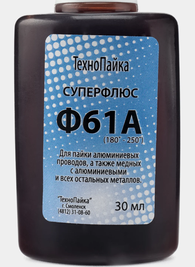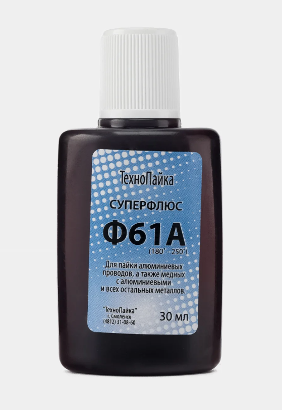 Флюс Ф-61А предназначен для удаления оксидов с поверхности под пайку, улучшения растекания жидкого припоя при пайке алюминия и алюминиевых сплавов. Применяется при пайке деталей или поверхностей припоями оловянно-свинцовой группы. После пайки требуется промывка водой или смоченной в спирте салфеткой. При попадании на кожу необходимо промыть мыльной водой.