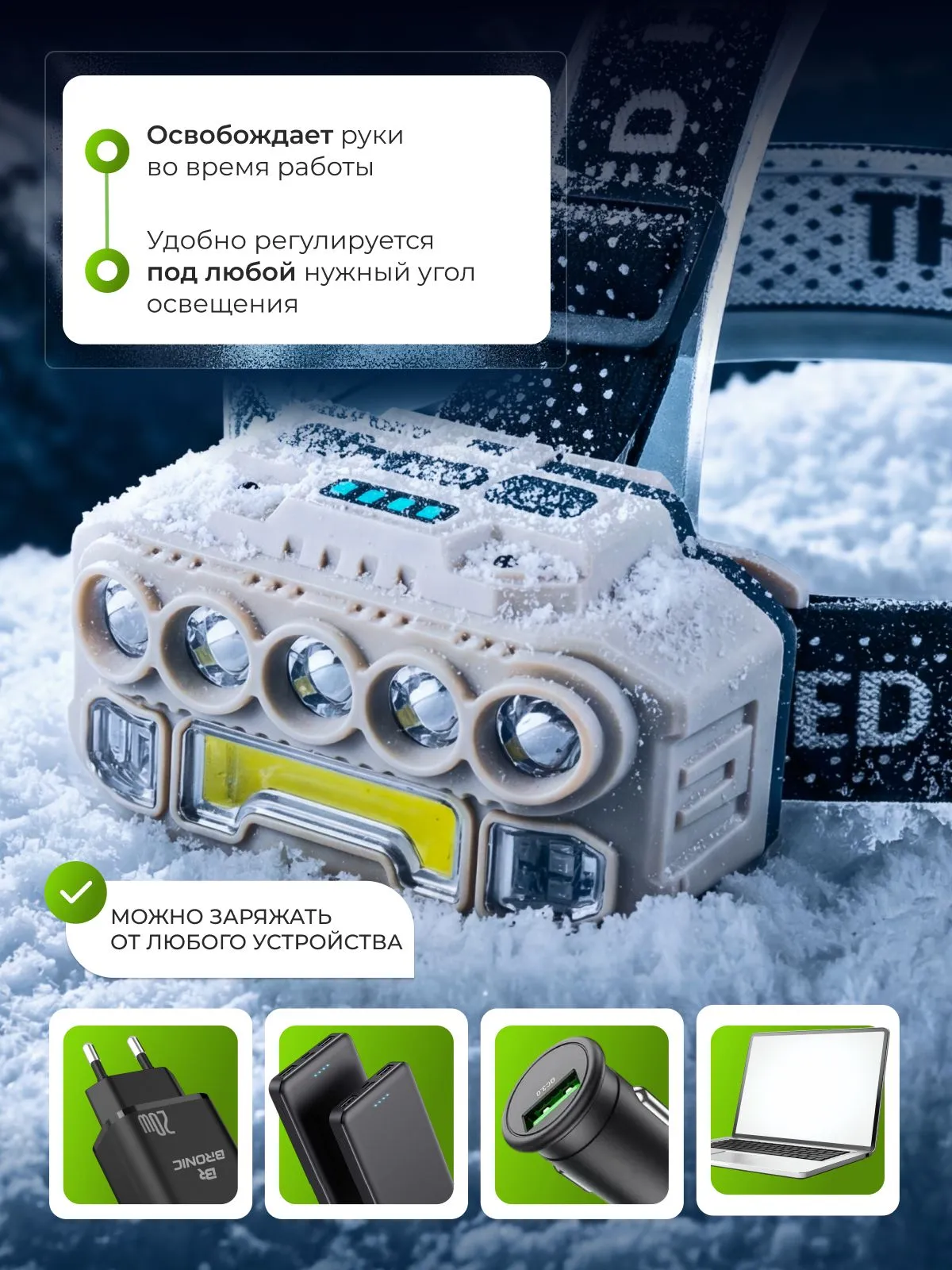 Налобный аккумуляторный фонарик — Ваш лучший выбор, когда дело касается освещения в труднодоступных местах, ведь он создан для удобства и функциональности. Светодиодный налобный фонарь идеально подойдет как для профессионалов, так и для любителей. Если Вы работаете в темное время суток, этот фонарь налобный станет незаменимым помощником. Прекрасно подходит для рыбаков, туристов, строителей, а также для использования в быту — например, во время ремонта или при аварийных ситуациях.