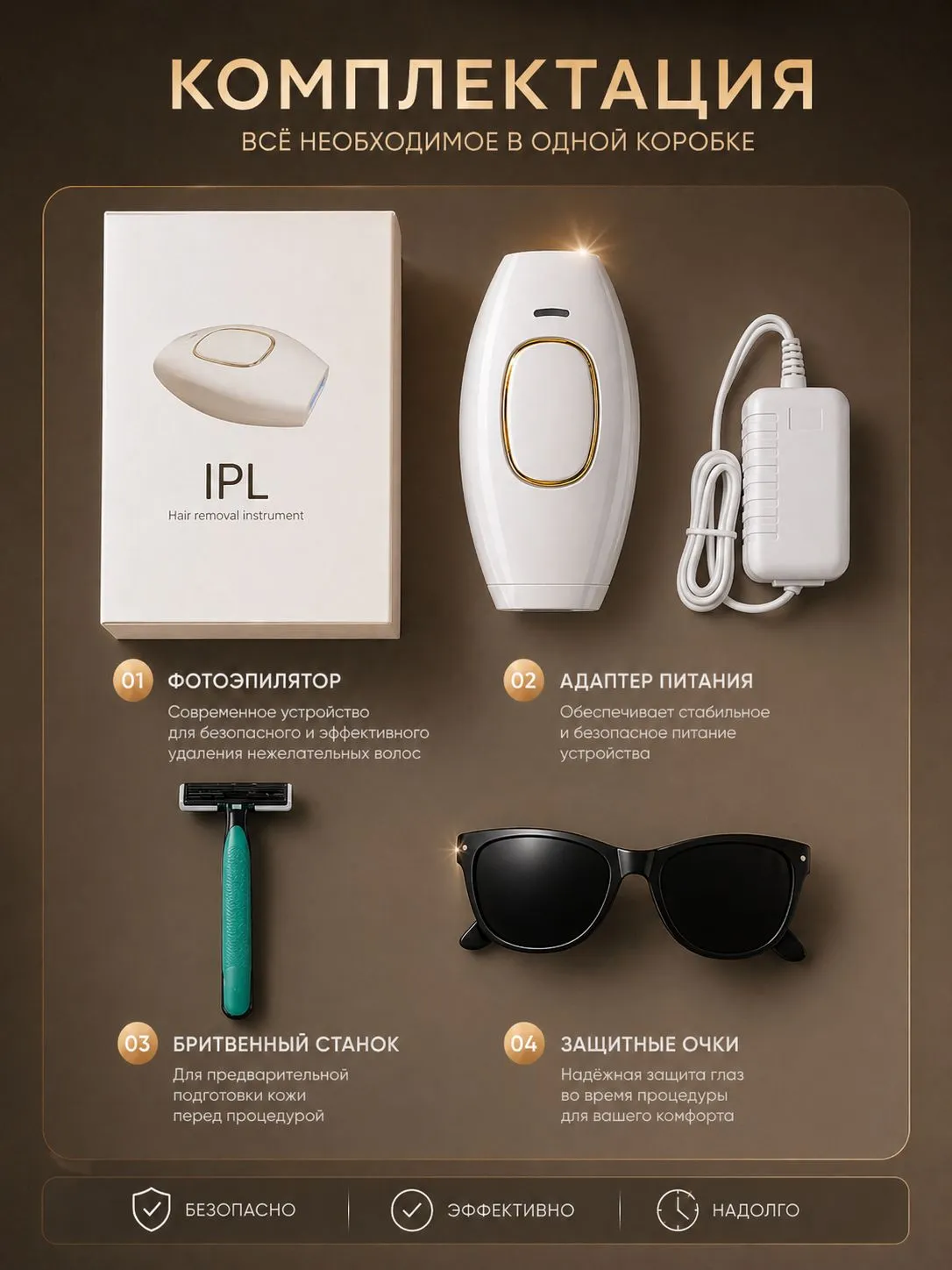 Современный фотоэпилятор с IPL-технологией обеспечивает эффективное и безопасное удаление нежелательных волос прямо у вас дома. Это профессиональный уход без боли, лишних затрат и визитов в салон.