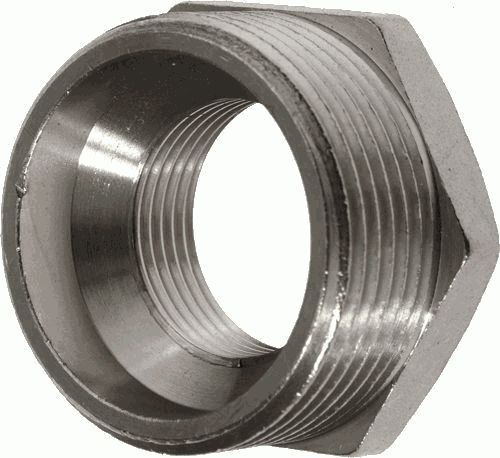 Футорка TERMA 06201 предназначена для создания соединения трубопровода при переходе с диаметра трубы 3/4" на 1/2". Резьба меньшего диаметра - внутренняя, большего - наружная. Изготовлена из горячепрессованной латуни с никелированным покрытием, номинальное номинальное рабочее давление от 25 бар, рабочий диапазон температуры от -20°C до +150°C.