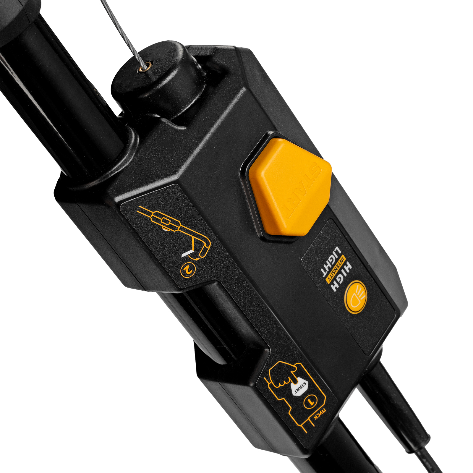 - Эффективное скашивание в условиях недостаточной освещенности — производитель предусмотрел 2 LED-фары в передней части корпуса.