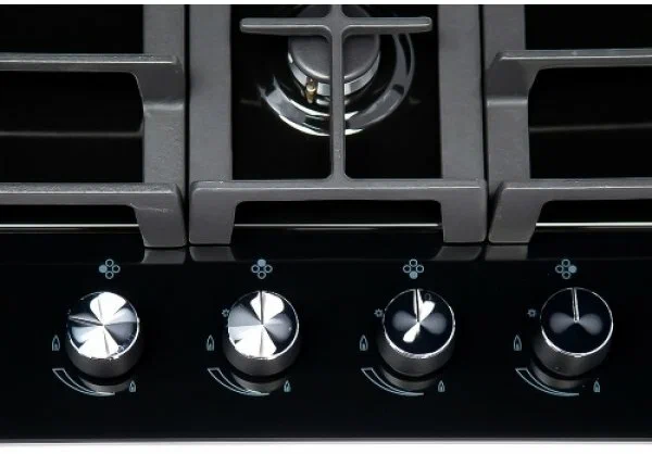 Кол-во конфорок: 4 Ширина встраивания: 60 см Материал поверхности: Закаленное стекло Материал решетки: Чугун Электроподжиг: Да WOK: Да Цвет: Черный