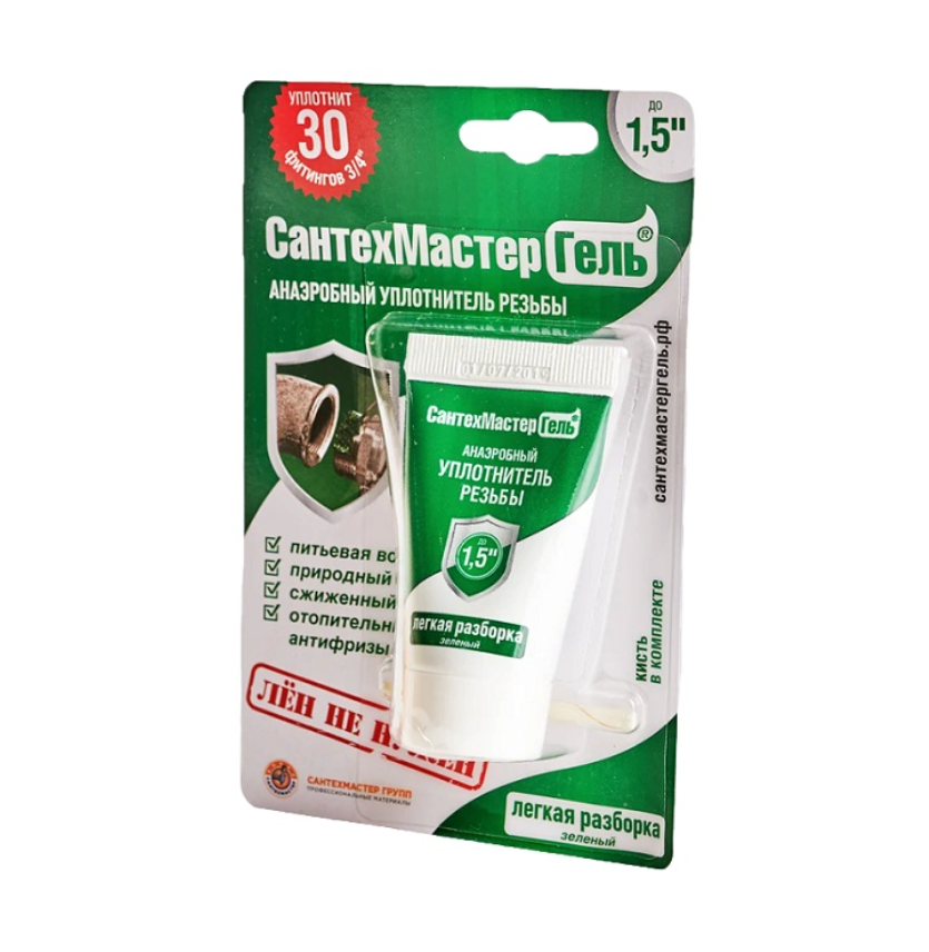 Гель СантехМастер Зеленый, тюбик 15 г, блистер 04013 — это резьбовой герметик для металлических соединений, созданный для легкого демонтажа соединений, которые располагаются в тяжело доступных местах, где невозможно использовать иные уплотнительные материалы. Он разработан для быстрой и качественной герметизации металлических фланцевых и резьбовых соединений.
