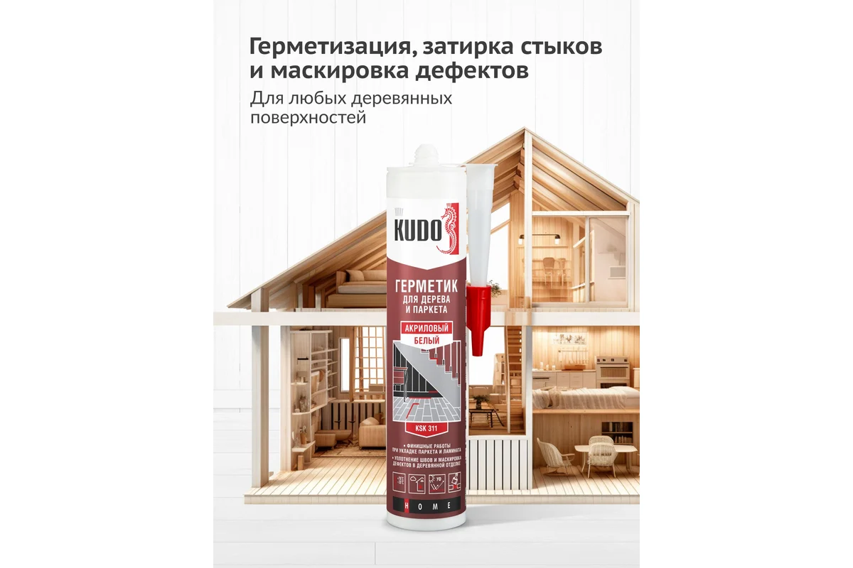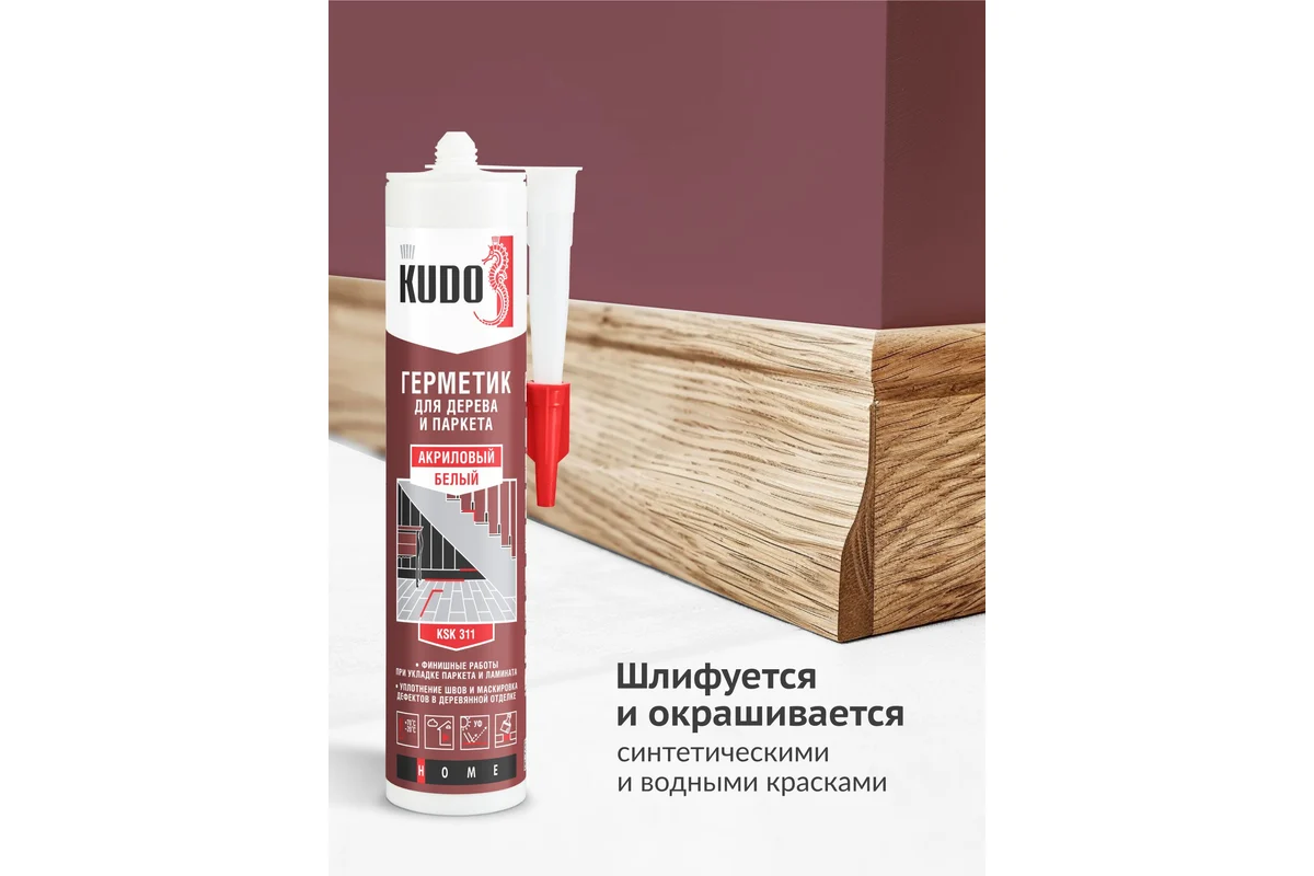 Герметик для паркета KUDO белый 280 мл KSK-311 применяется при укладке паркета, ламината, пробковых покрытий. Продукт отличается паропроницаемостью, стойкостью к плесени и грибку, не выцветает с течением времени.