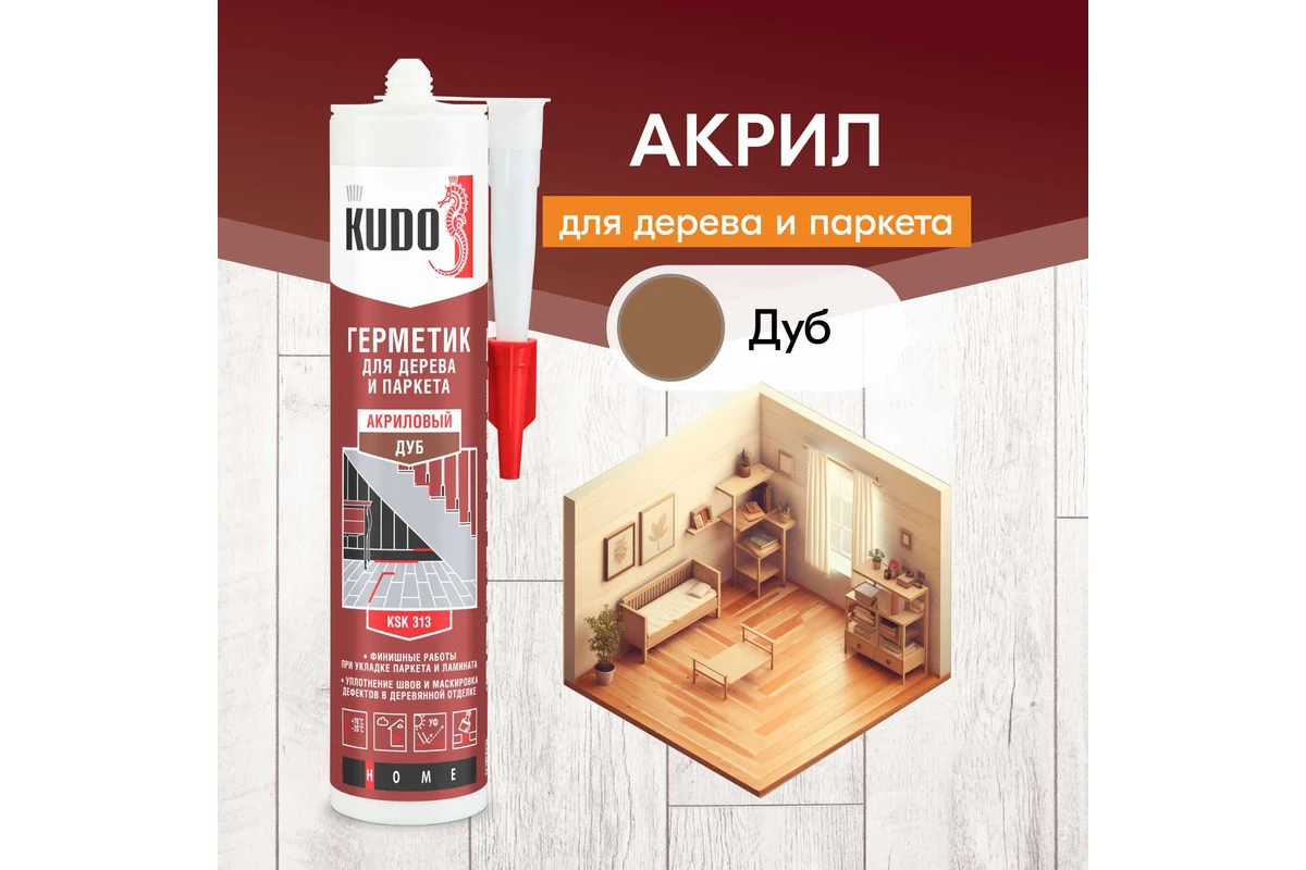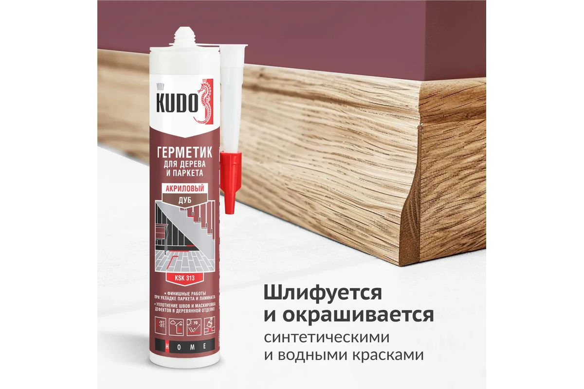 Герметик для паркета KUDO дуб 280 мл KSK-313 применяется при укладке паркета, ламината, пробковых покрытий. Продукт отличается паропроницаемостью, стойкостью к плесени и грибку, не выцветает с течением времени.