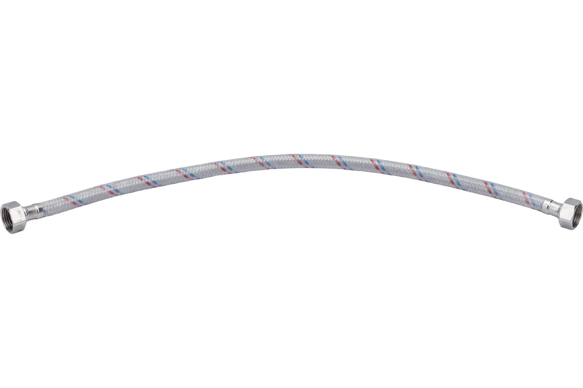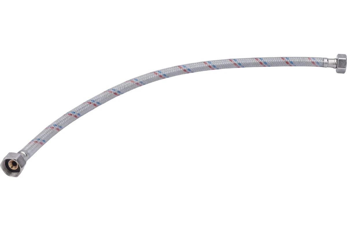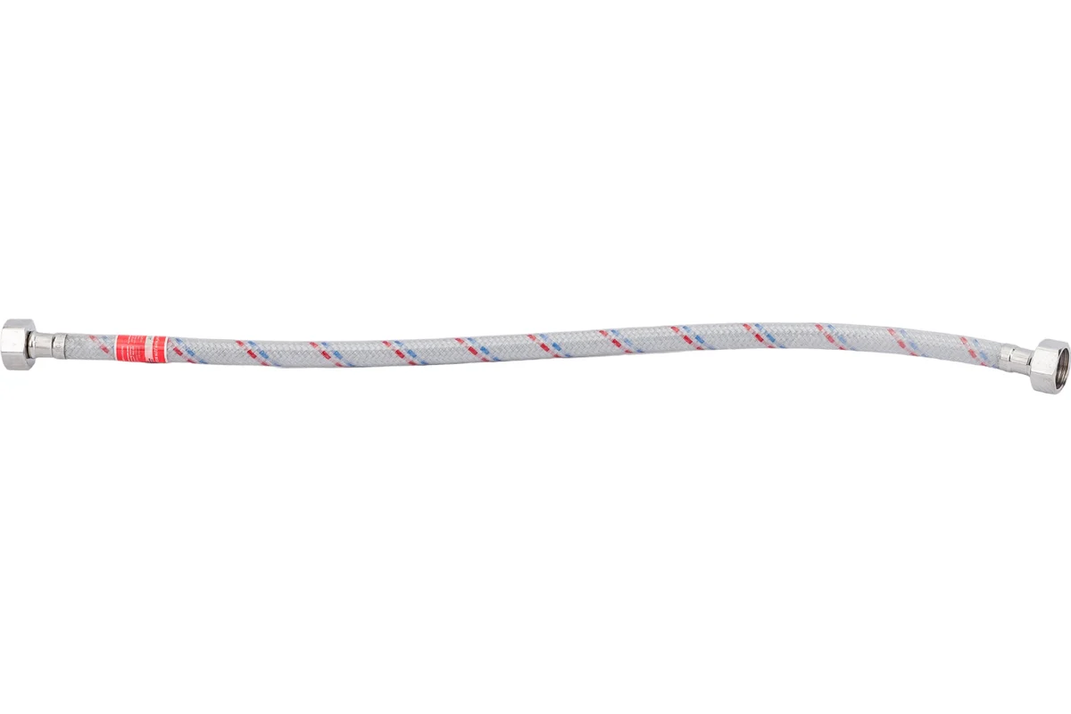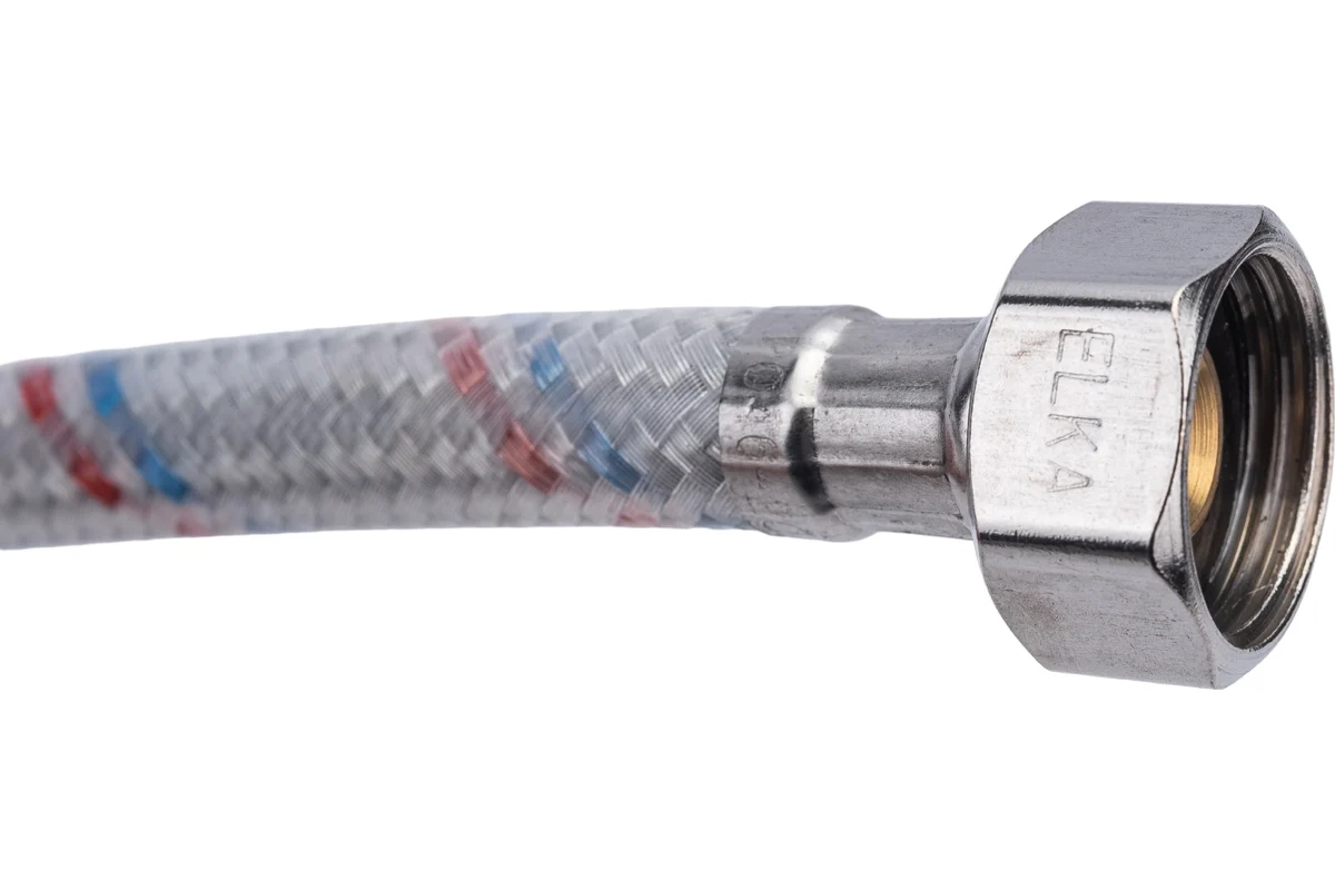 Гибкая подводка для воды ELKA оплетка нейлон, пвх покрытие, 1/2" х 50 см в/в представляет собой гибкий шланг, внутренняя трубка которого изготовлена из этилен-пропиленового каучука (EPDM), покрытого оплеткой из нейлона с поливинилхлоридным (ПВХ) покрытием. Накидная гайка и обжимные гильзы выполнены из нержавеющей стали, а штуцер и ниппель из латуни.