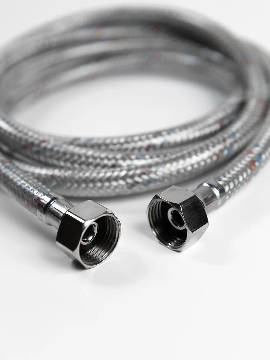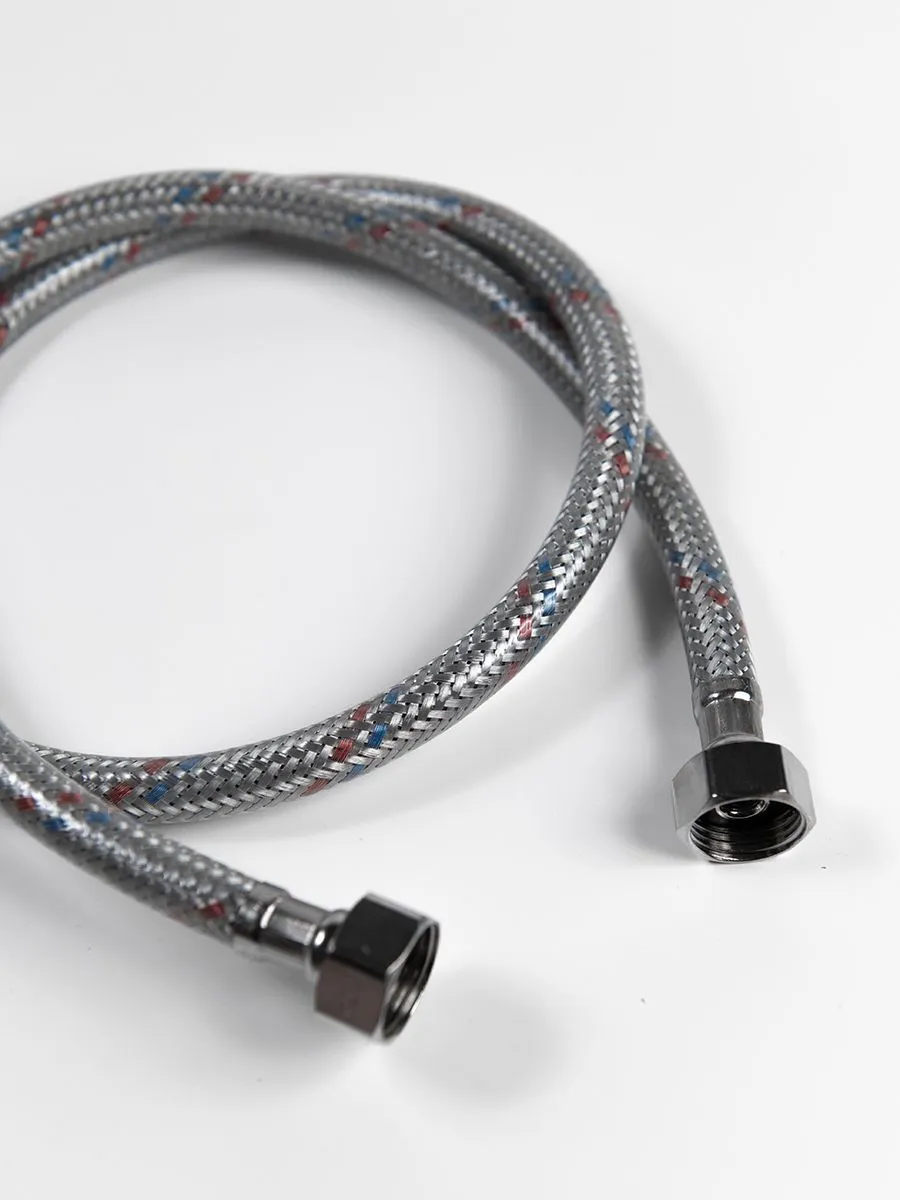 • Расшифровка характеристик:Гибкая подводка для воды: Указывает на тип изделия. Это шланг в металлической оплетке, который гнется и позволяет легко подключить прибор без точной подгонки жестких труб.