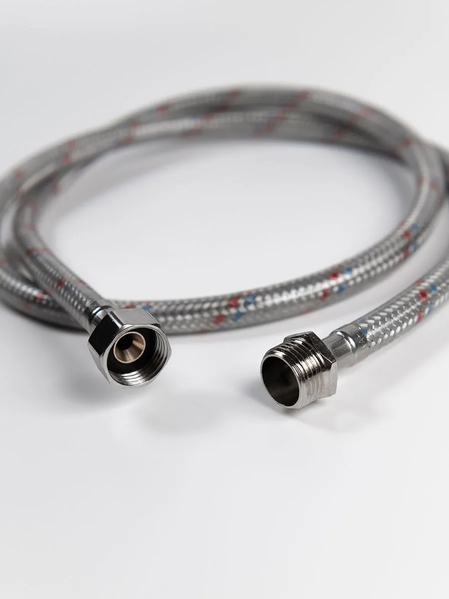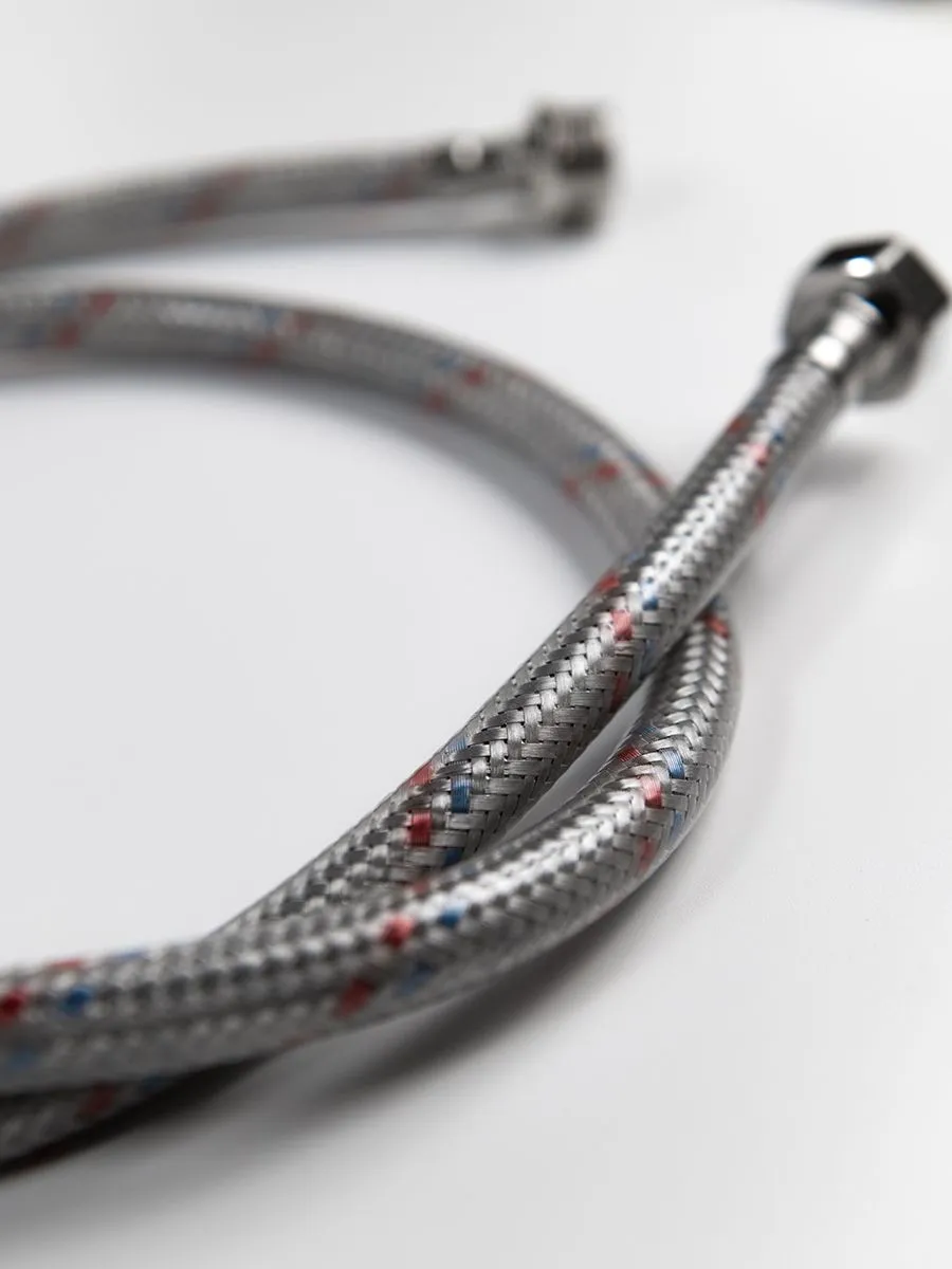 Расшифровка характеристик:Гибкая подводка для воды: Указывает на тип изделия. Это шланг в металлической оплетке, который гнется и позволяет легко подключить прибор без точной подгонки жестких труб.