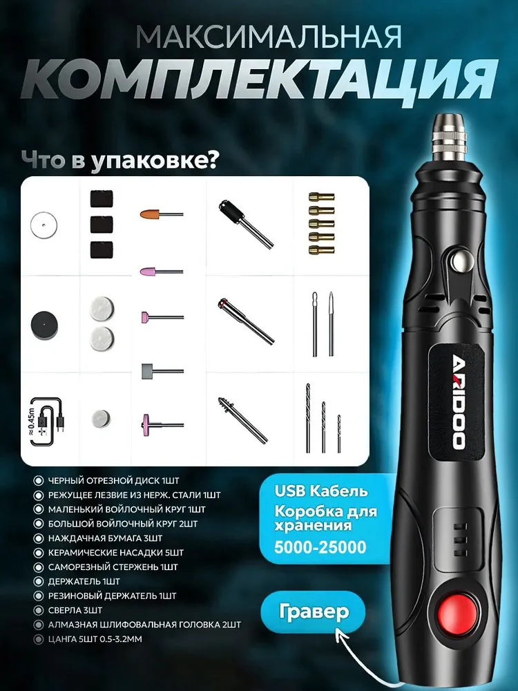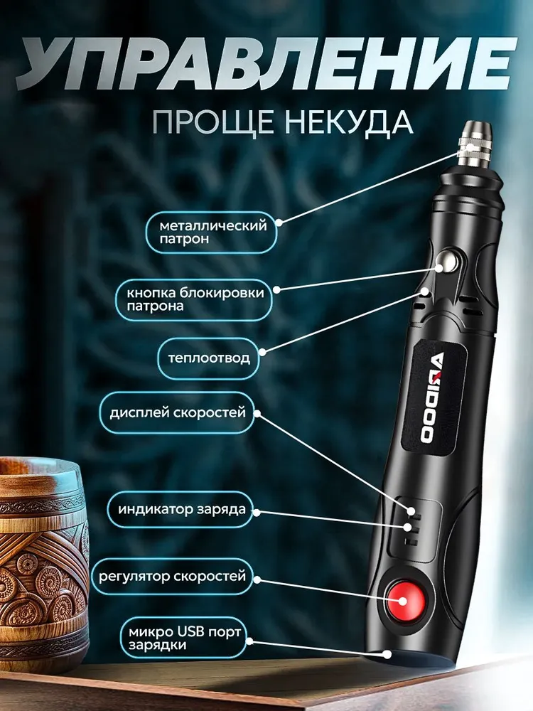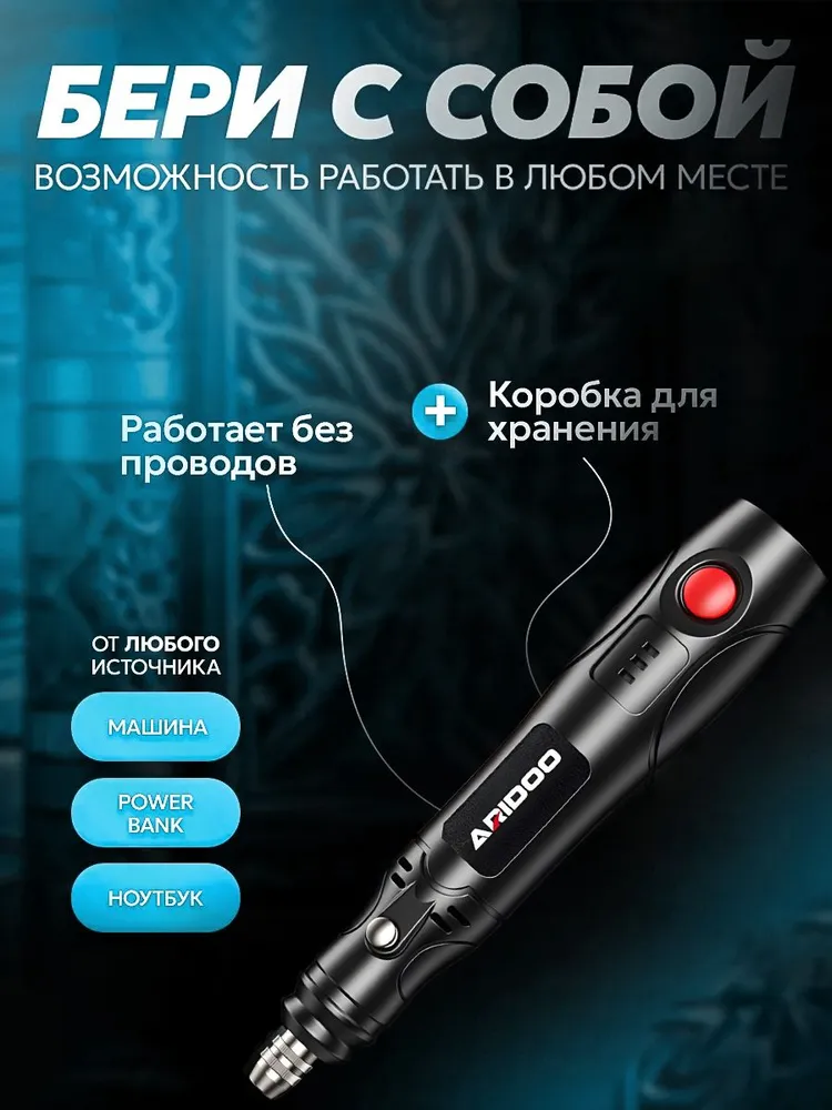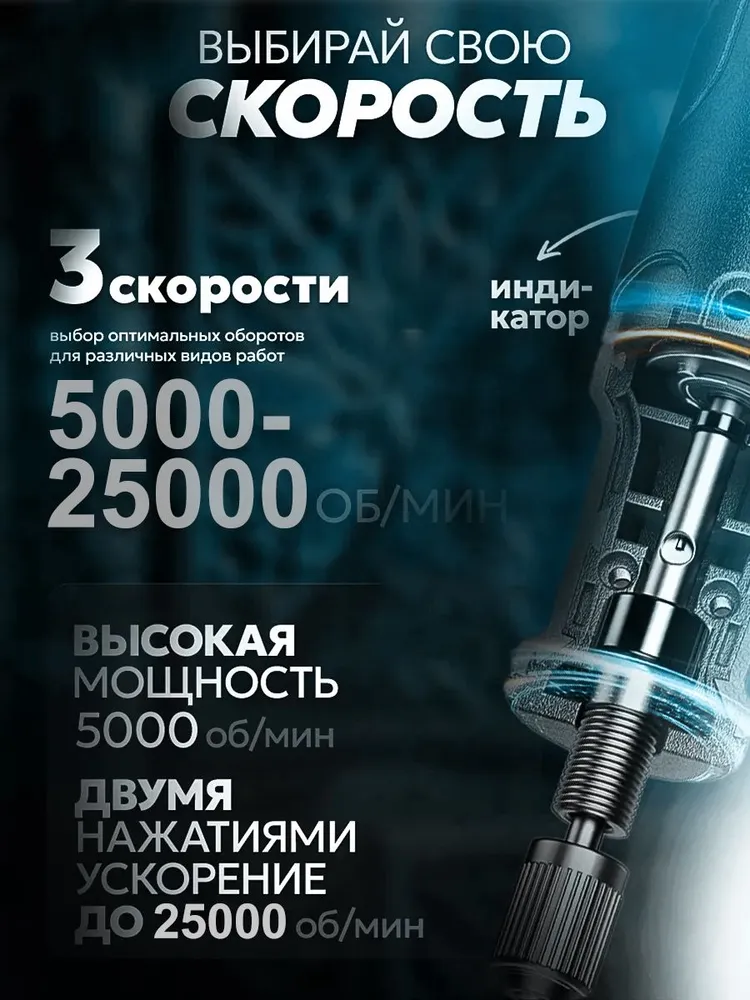 Функциональные особенности: Блокировка шпинделя, Съемный патрон, Плавное изменение скорости, Бесступенчатая регулировка частоты вращения