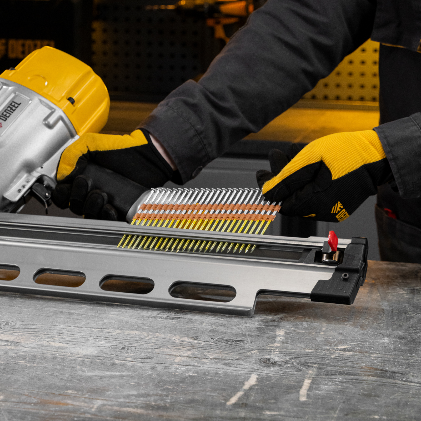 Оцинкованные гвозди Denzel 57690 типа SN21, длиной 90 мм и диаметром 3,05 мм, 2000 шт. в упаковке, — расходники для пневматического нейлера. Используются для скрепления различных материалов, будут полезны во время сборочных и отделочных работ.