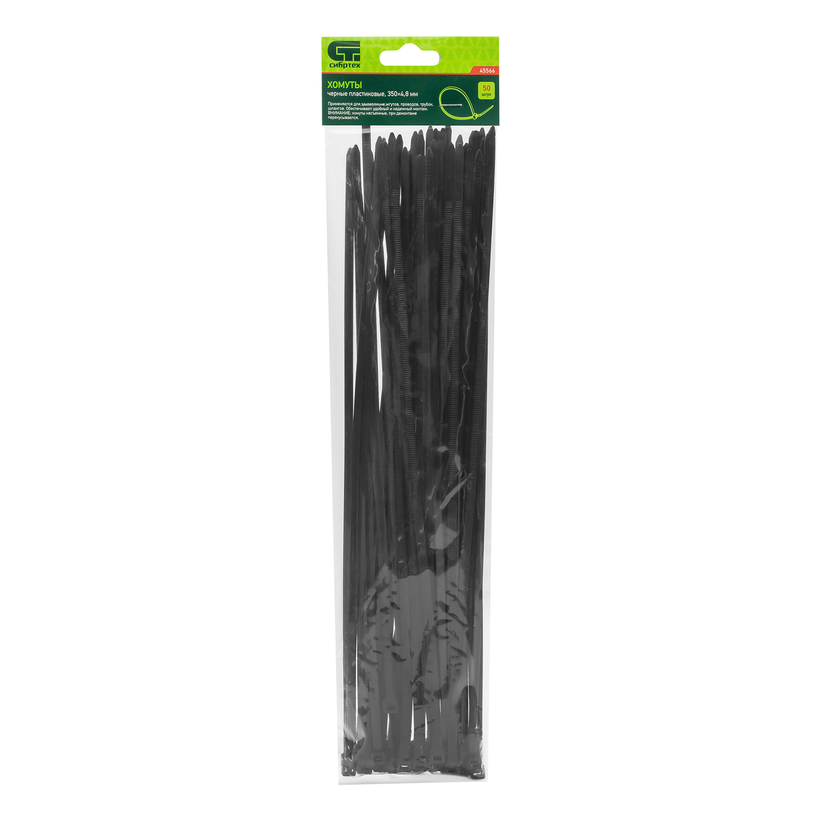 Черные пластиковые хомуты Сибртех 45566, 100 х 4,8 мм, 50 шт. в упаковке, используются для стяжки кабелей, закрепления трубок, шлангов, рекламных конструкций, а также для упаковки различных предметов. Пригодятся во время прокладки электрических и локальных вычислительных сетей, ремонта компьютерной техники, оформлении торговых стендов, комплектовании товара, будут также полезны дома, на даче и в гараже.