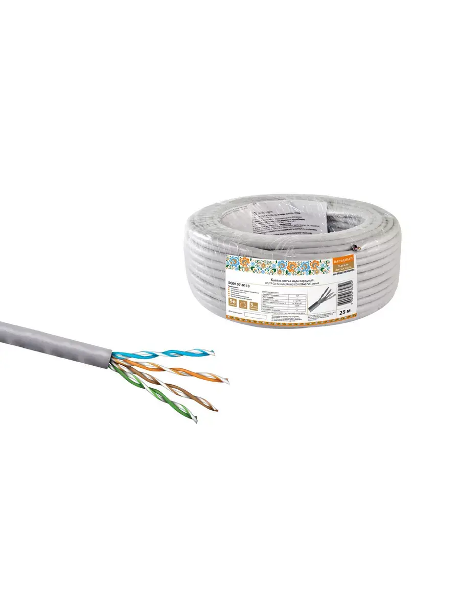 Технические характеристики TDM ELECTRIC народный U/UTP Cat 5e 4х2х24AWG CCA PVC, серый SQ0107-0113. Продается на отрез