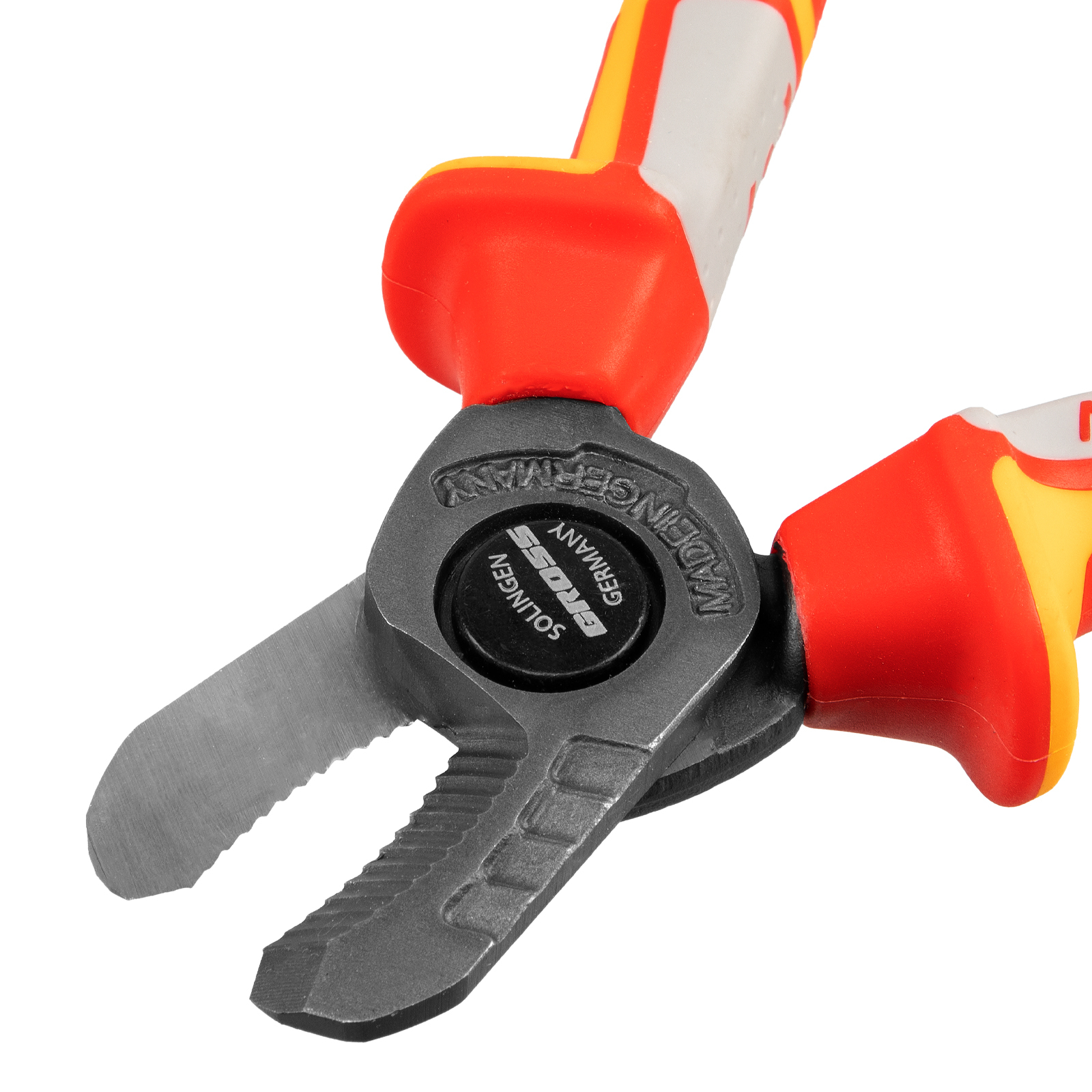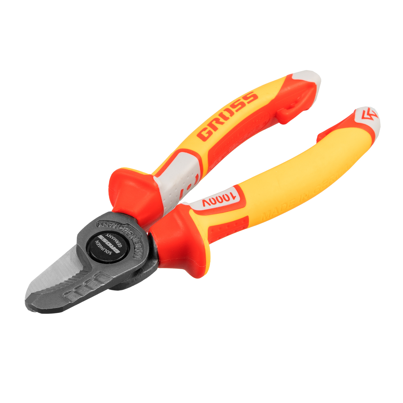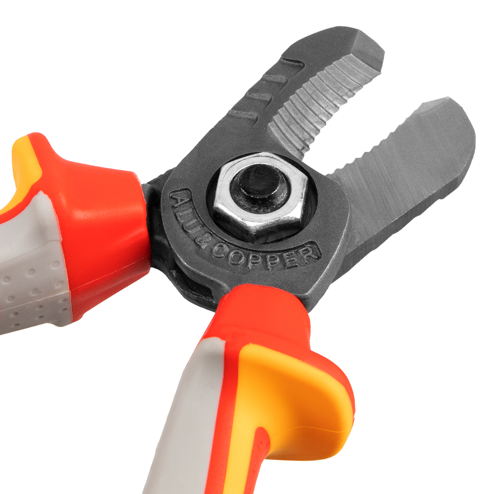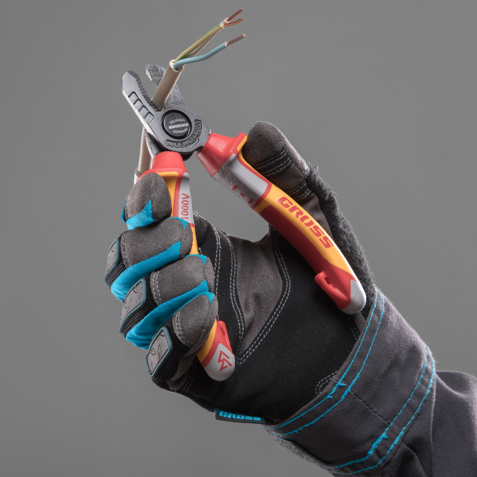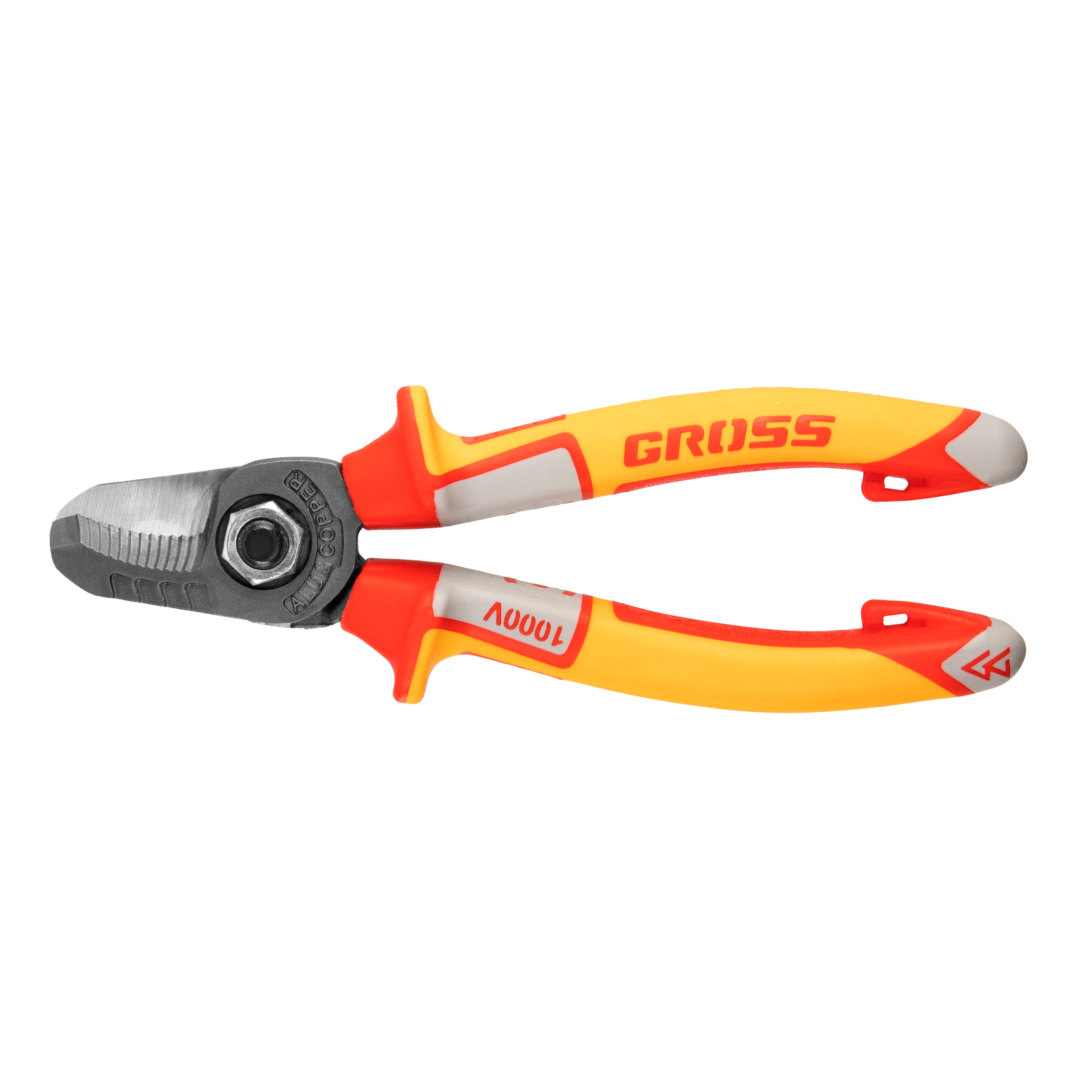 Кабелерез Gross 17725 длиной 160 мм, с трехкомпонентными диэлектрическими рукоятками до 1000 В, широко используется при проведении слесарных и электромонтажных работ. С его помощью можно перерезать многопроволочную жилу из меди и алюминия, снять изоляцию с электропроводов. Инструмент не подходит для работы с алюминиевыми сплавами, стальной проволокой и холоднотянутыми медными проводами, может использоваться только для многопроволочных жил (общий диаметр кабеля не более 16 мм, сечение до 50 кв. мм). Важно — техника безопасности не допускает выполнения работ под напряжением.