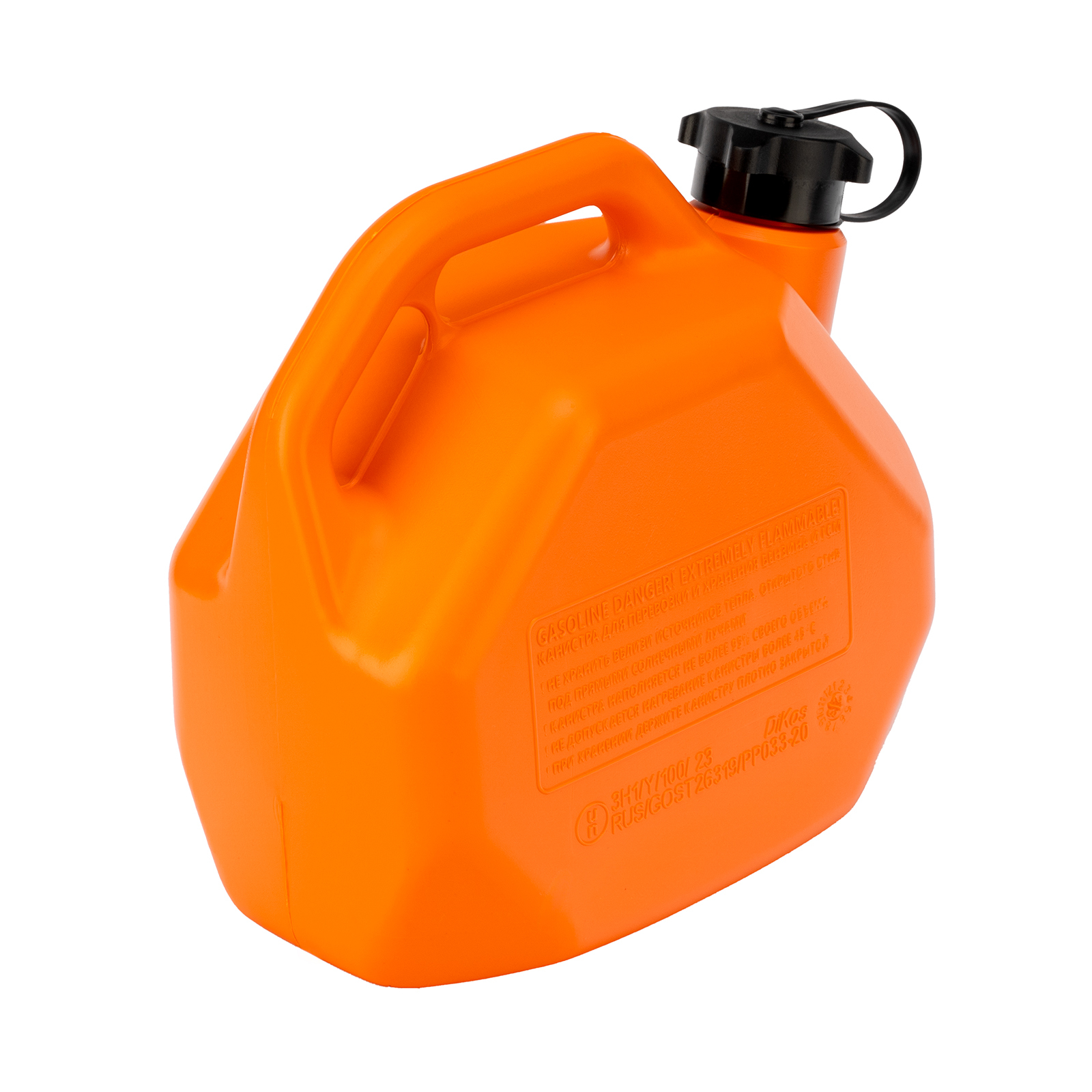 - Оптимальный объем — канистра обеспечивает запас топлива 5 л для дозаправки автомобиля и садовой бензотехники.