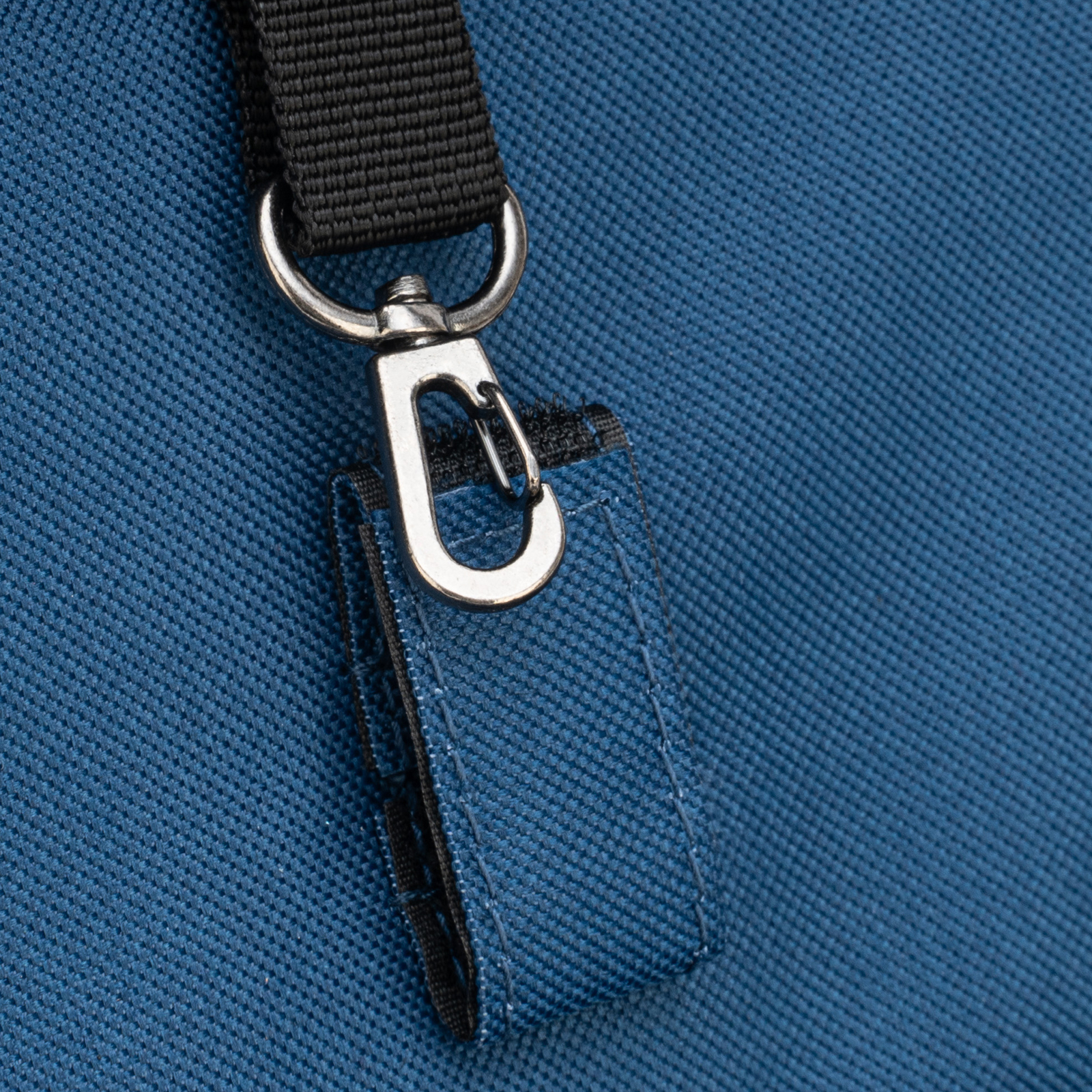 - Долговечность — при изготовлении использован прочный и износостойкий полиэстер 600D, устойчивый к истиранию, пластиковые торцевые накладки, стальные заклепки и усиленные карабины.