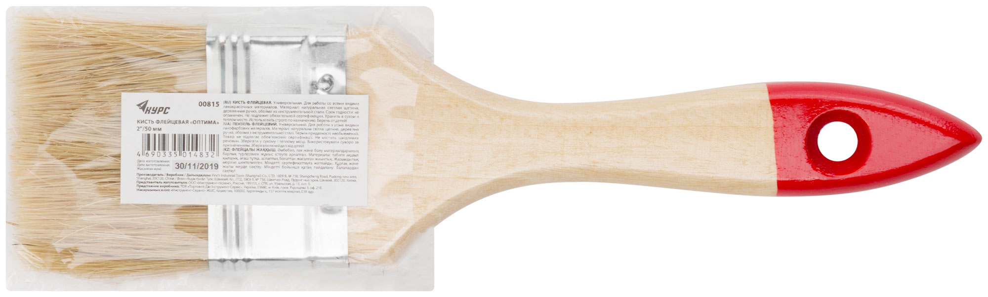 Кисть флейцевая КУРС "Оптима", натур. cветлая щетина, деревянная ручка 2" (50 мм)