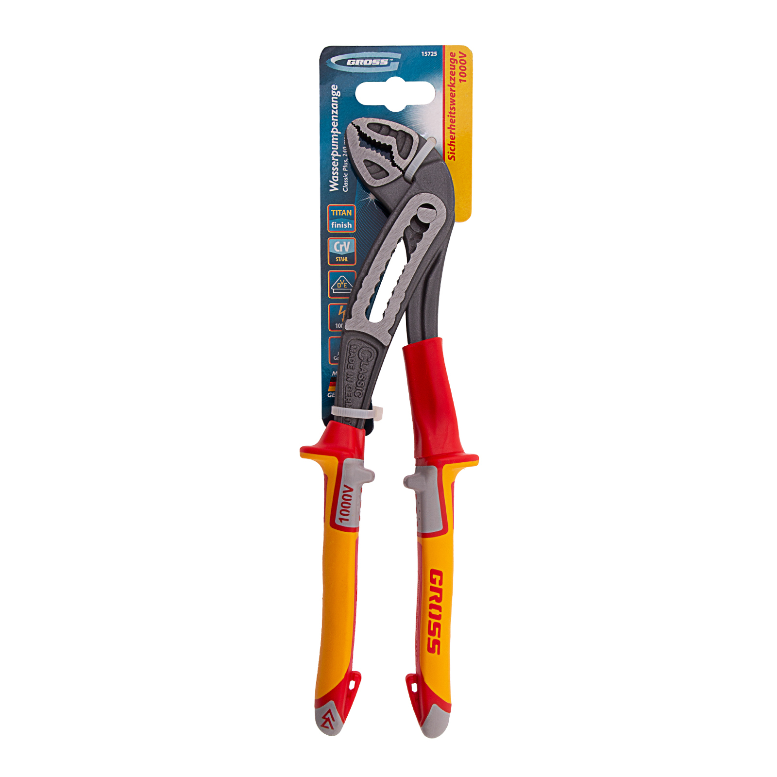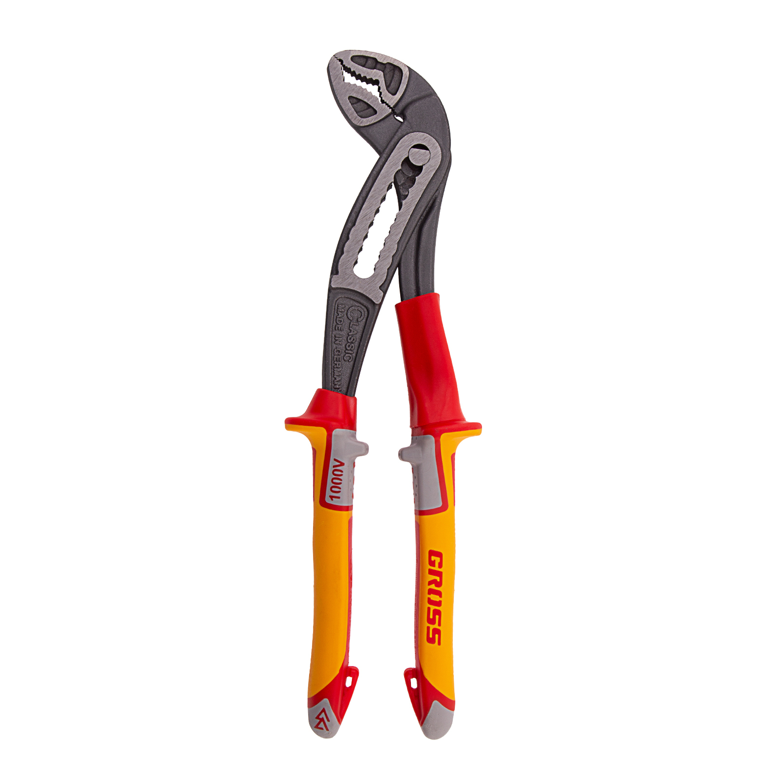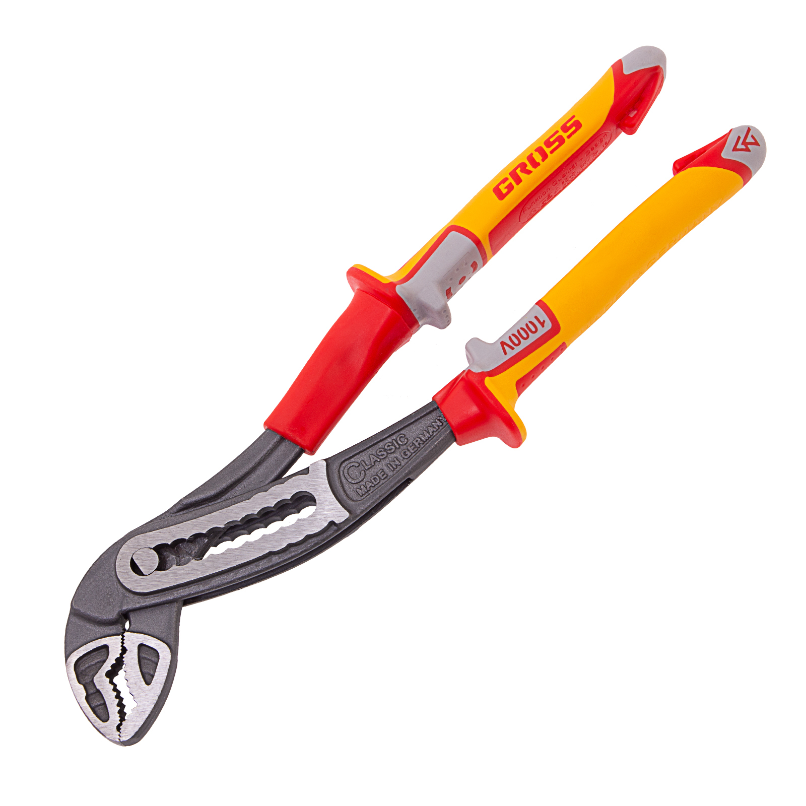 Переставные клещи Gross 15725 длиной 240 мм, с диэлектрическими рукоятками до 1000 В, — шарнирно-губцевый инструмент, предназначенный для выполнения ремонтных, слесарно-монтажных, сантехнических работ. Клещи помогают удерживать и вращать детали диаметром до 50 мм: трубы, фитинги, крепеж. Важно — выполнять работы под напряжением запрещено!