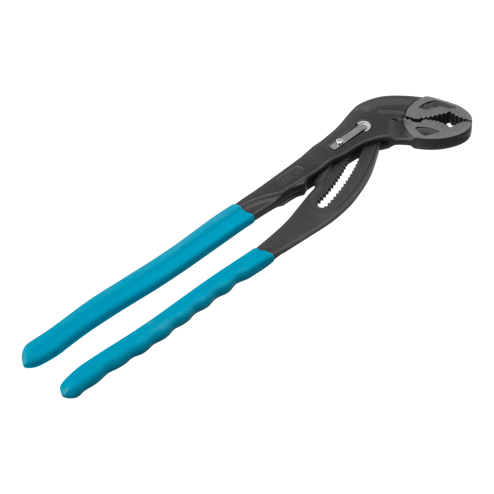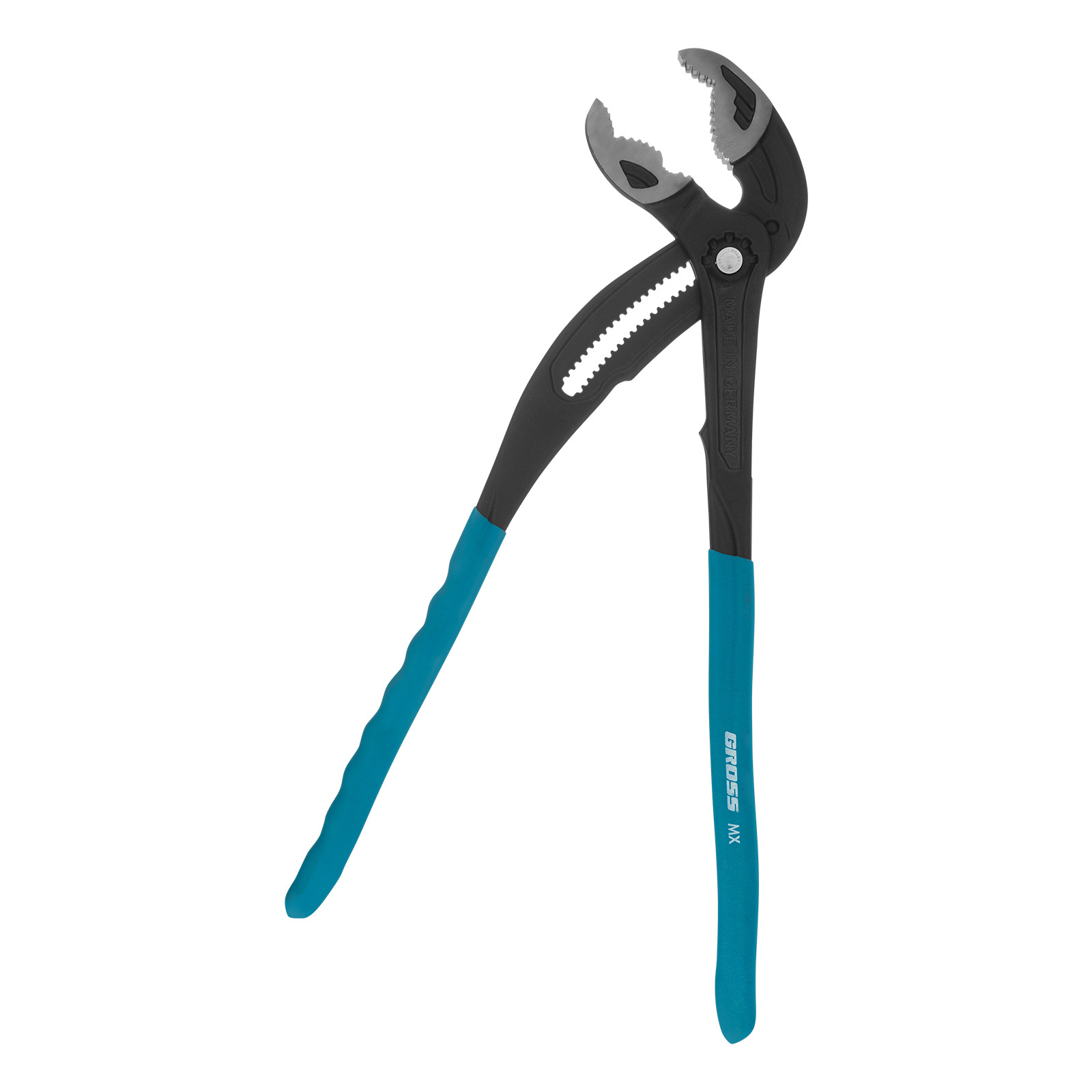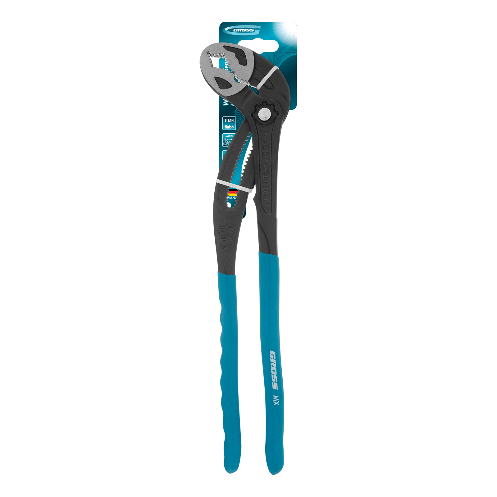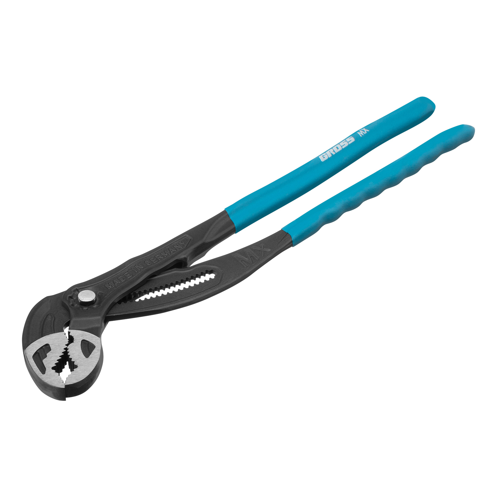 Переставные клещи Gross 15729 длиной 400 мм, с кнопочным механизмом и обливными рукоятками, — профессиональный инструмент для работ с сантехникой, фитингами, трубами и т.д. Рабочие губки с насечками обеспечивают надежный захват изделий диаметром до 95 мм. Клещи удобны для работы в труднодоступных местах.