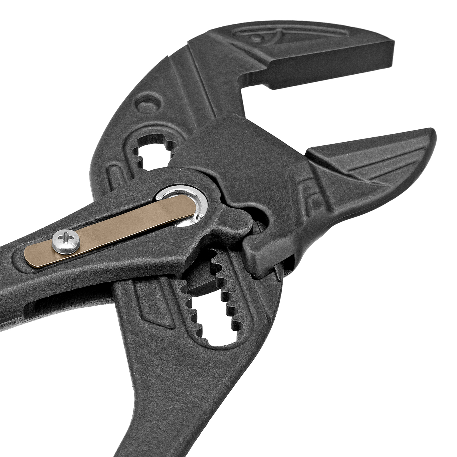 - Удобная работа с деталями разного размера — кнопочный механизм позволяет быстро менять положение губок и фиксировать их в нужном положении.