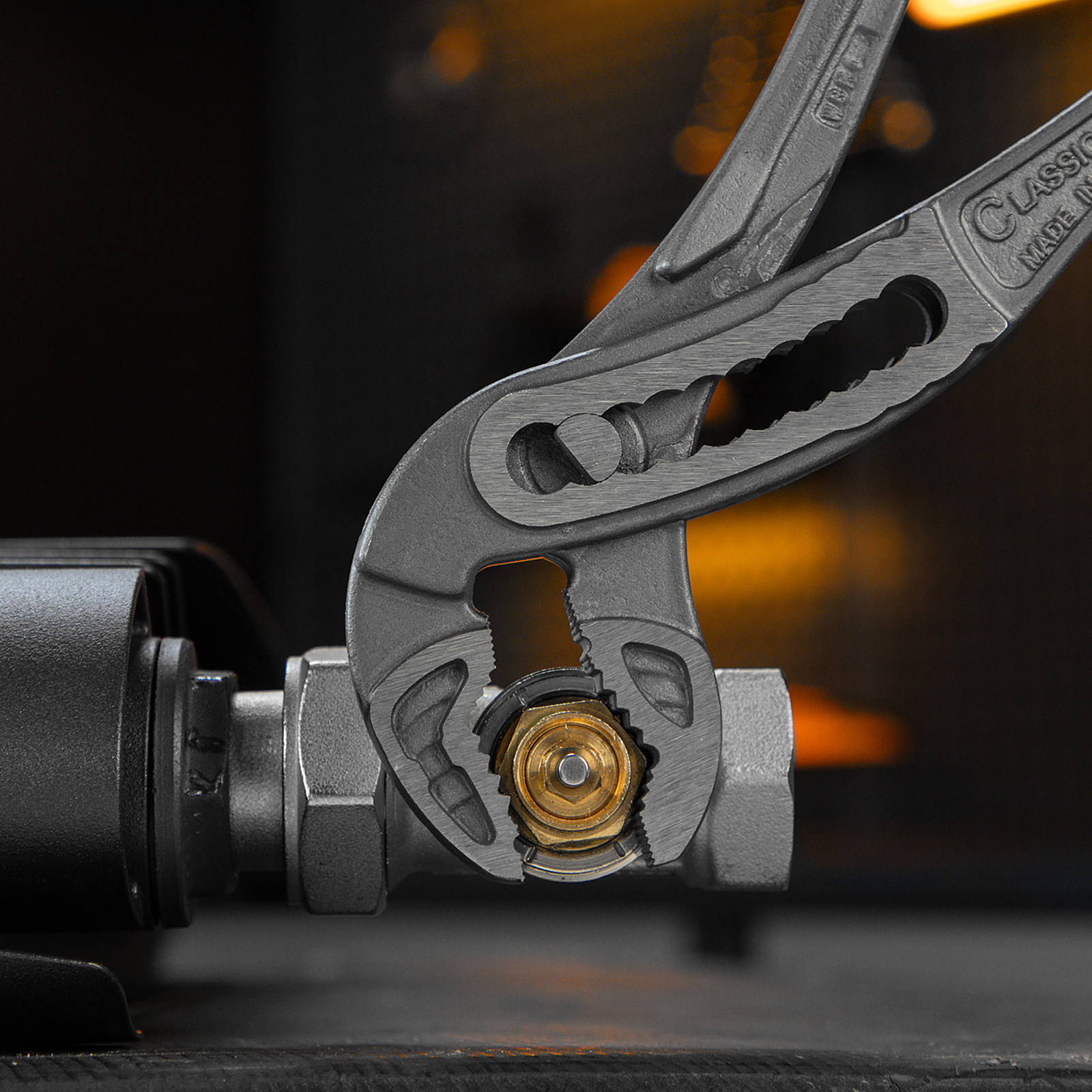 - Прочность и долговечность — клещи изготовлены из стали C45, полимерное покрытие Titan finish защищает рабочие части от коррозии.