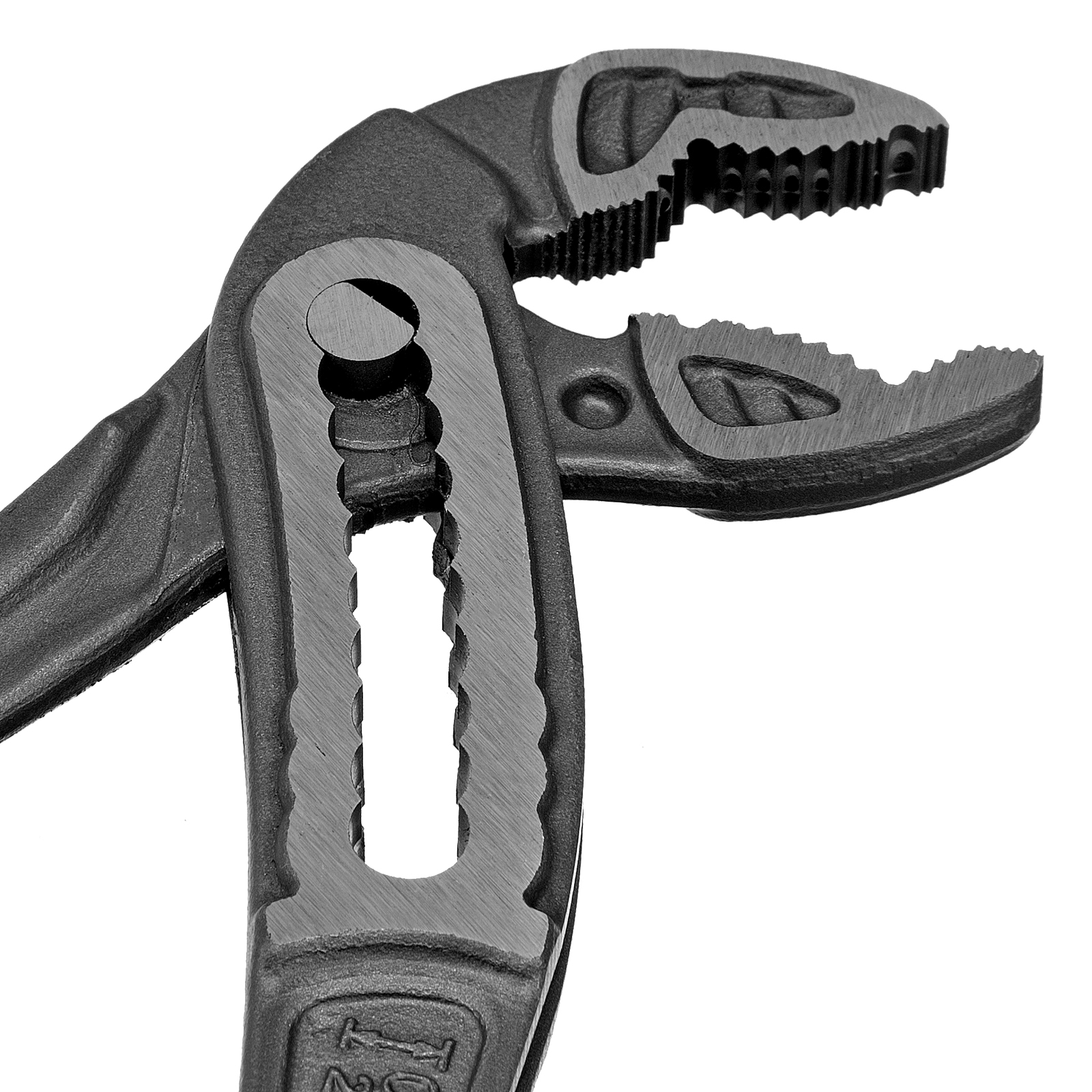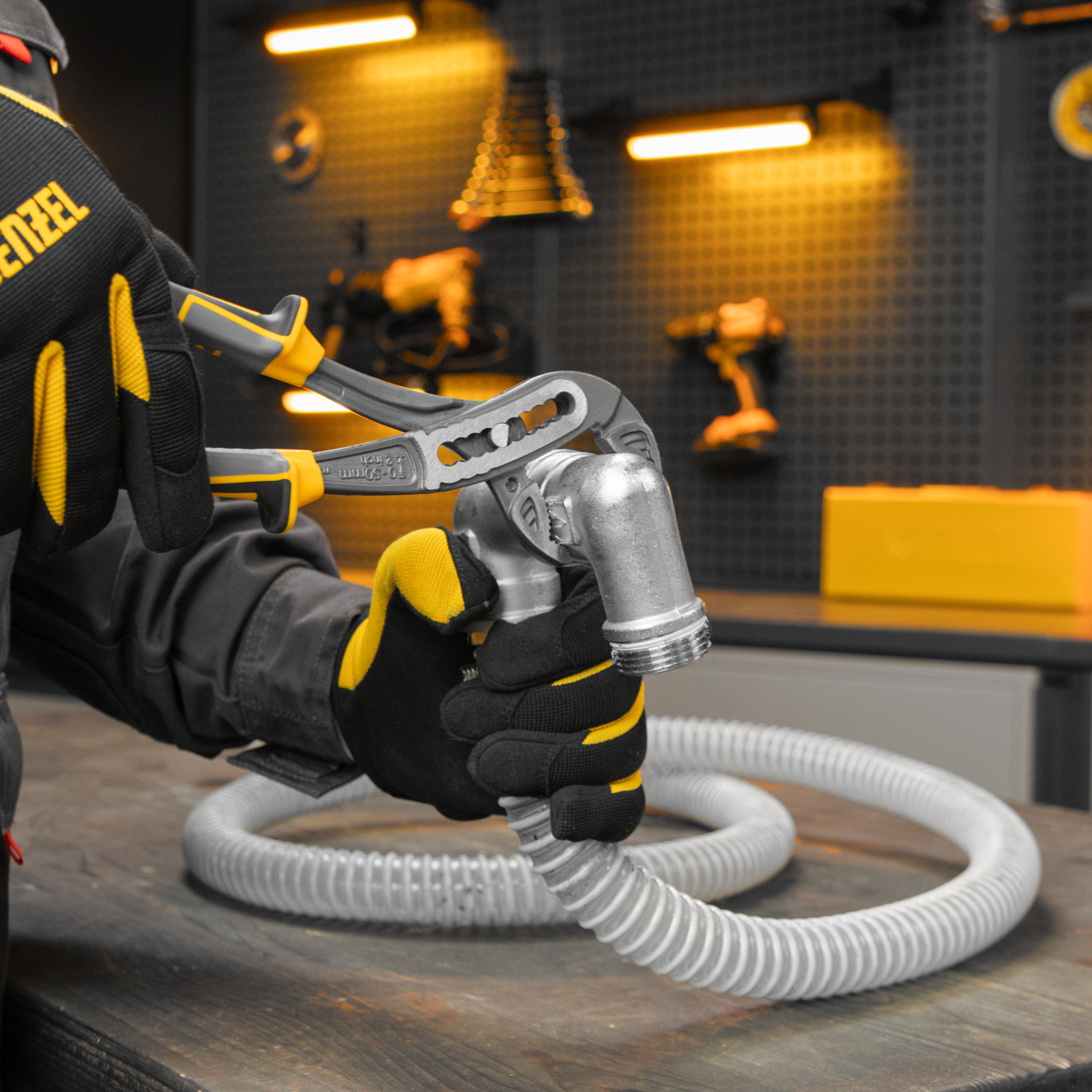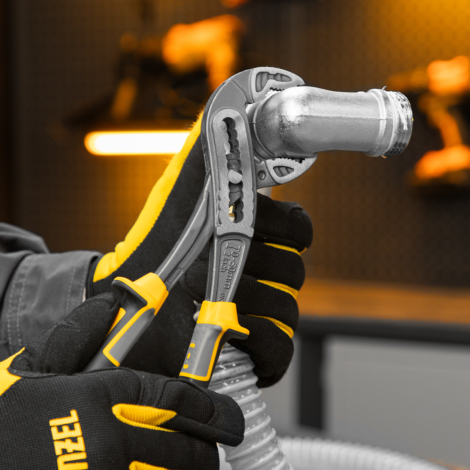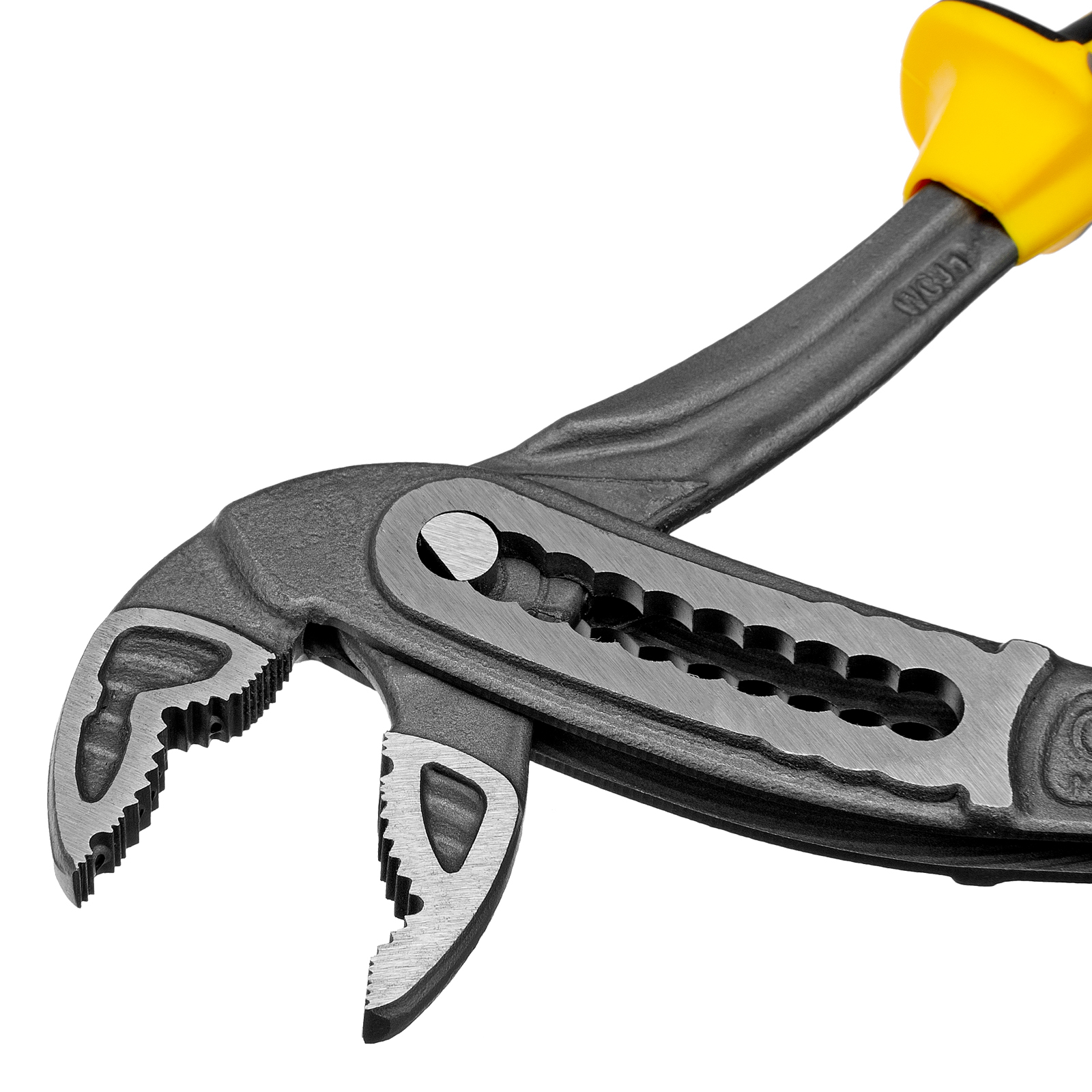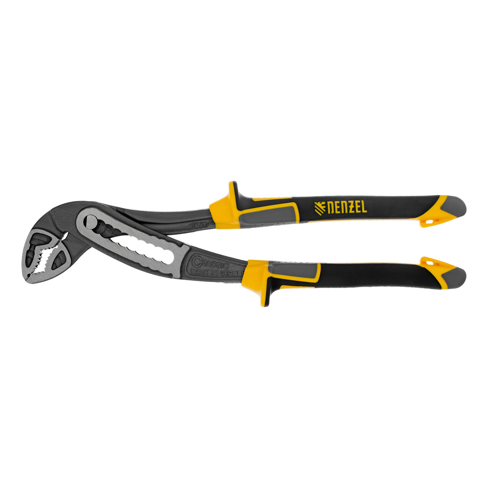 Переставные клещи Denzel 17900 длиной 240 мм, с трехкомпонентными рукоятками, предназначены для фиксации и вращения деталей и заготовок различной формы. Подходят для захвата фитингов, труб, крепежных элементов. Инструмент используется при проведении ремонтных, монтажных, сантехнических работ.