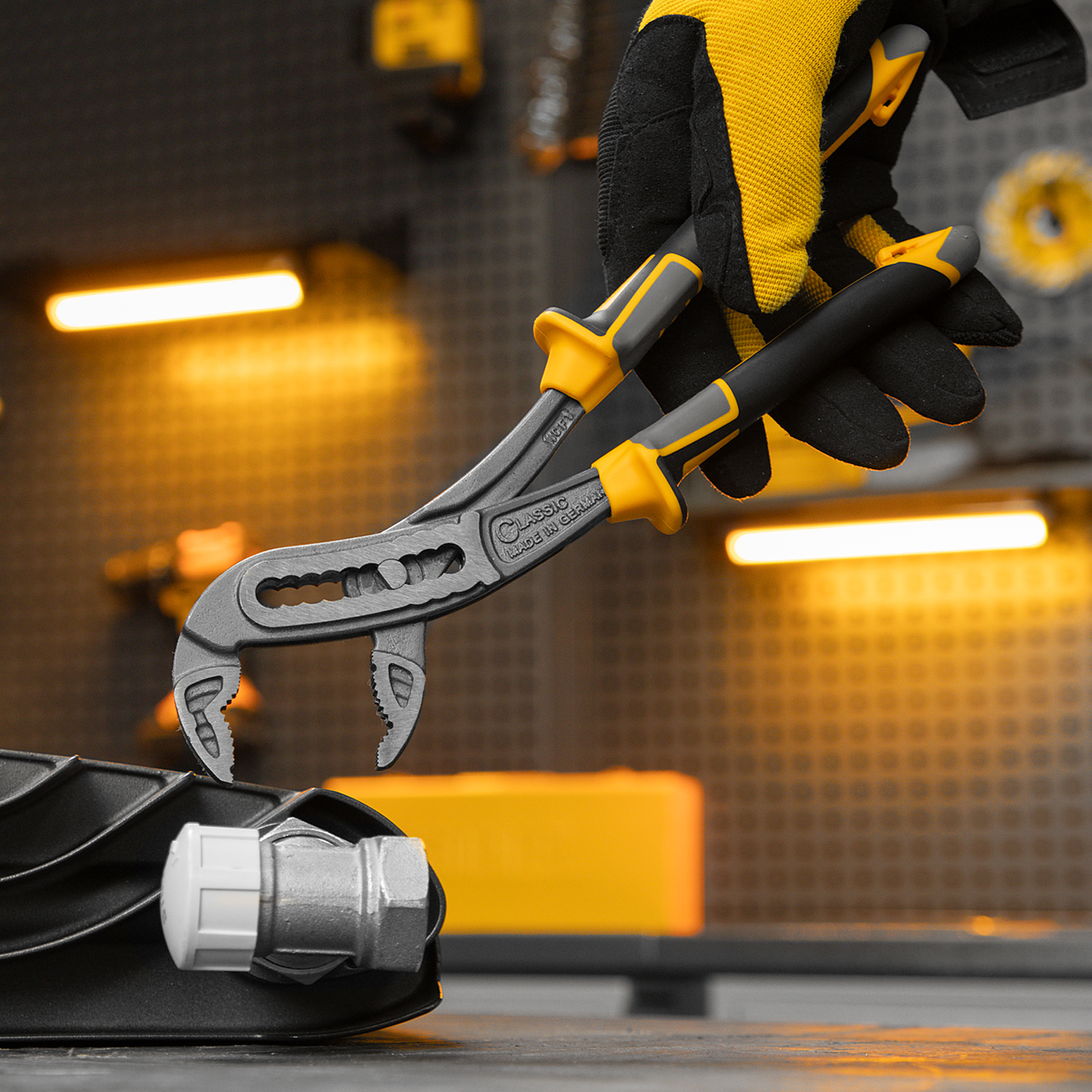 - Прочность и долговечность — клещи изготовлены из стали C45, полимерное покрытие Titan finish защищает рабочие части от коррозии.