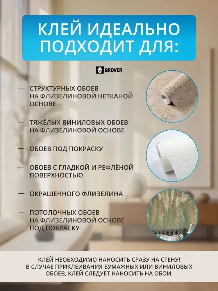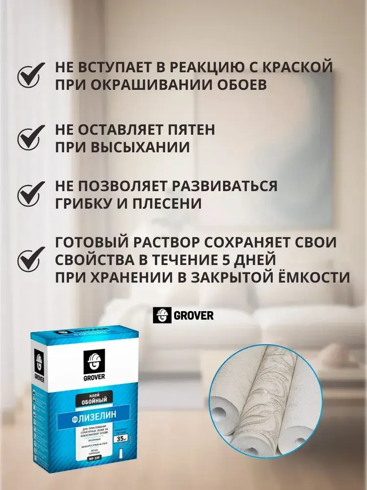 Это высококачественный клей для обоев флизелиновый, который идеально подходит для монтажа различных видов обоев, особенно флизелиновых и виниловых на флизелиновой основе. Обойный клей создан специально для обеспечения надежного сцепления и долговечности отделочных материалов, что делает его незаменимым в ремонте и отделке помещений. Наш клей для обоев отличается высокой адгезией и универсальностью, что позволяет использовать его для крепления обоев флизелиновых, а также обоев виниловых на флизелиновой основе. Он отлично подходит для работы с различными типами обоев, обеспечивая равномерное распределение и прочное сцепление с поверхностью стен. Благодаря своей формуле, клей для флизелиновых обоев легко наносится и быстро сохнет, что значительно ускоряет процесс ремонта. Этот клей обойный обладает отличной стойкостью к влаге и механическим воздействиям. Он идеально подходит для использования в жилых комнатах, кухнях, ванных комнатах и других помещениях с повышенной влажностью. Специальная формула делает его особенно эффективным при работе с обоями виниловыми на флизелиновой основе, обеспечивая надежное крепление без пузырей и складок. Наш клей для обоев флизелиновых — это часть широкого ассортимента строительных материалов, предназначенных для качественной отделки интерьера. Он легко разводится водой, обладает хорошей тягучестью и равномерно распределяется по поверхности. После нанесения он образует прочное соединение между стеной и обоями, что гарантирует их долгий срок службы. Использование нашего обойного клея — это залог аккуратной и профессиональной отделки. Благодаря своей универсальности, клей для флизелиновых обоев отлично справляется с задачами крепления различных видов обоев на разные поверхности. Выбирая наш клей обойный для флизелиновых, вы получаете надежный строительный материал высокого качества, который обеспечит прочное сцепление и эстетичный внешний вид вашей отделки.