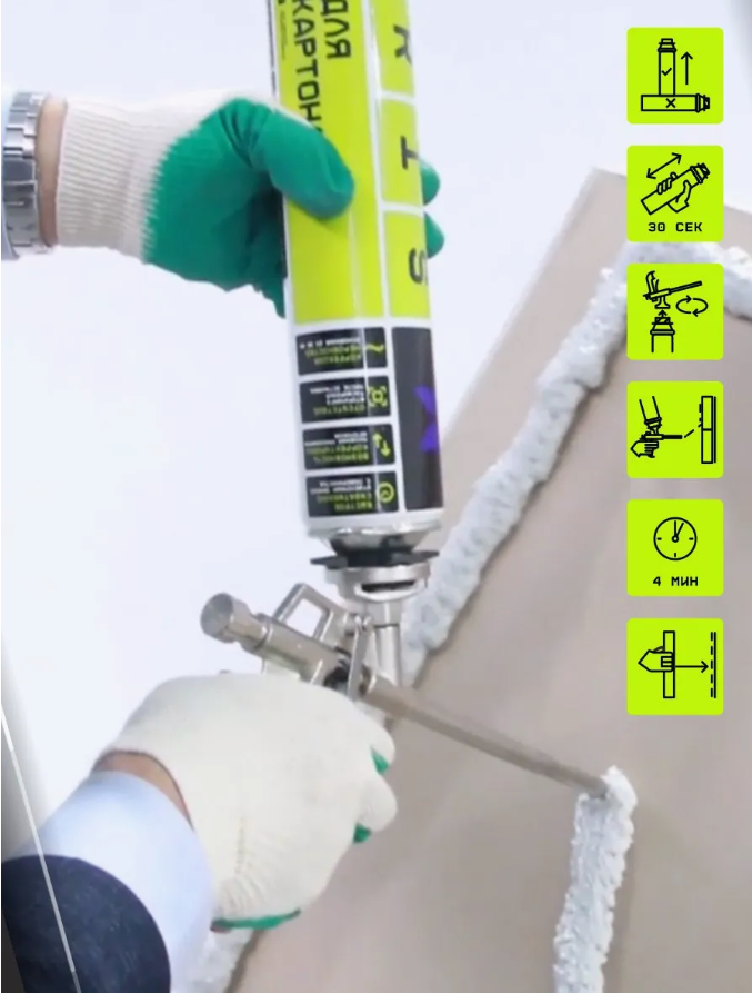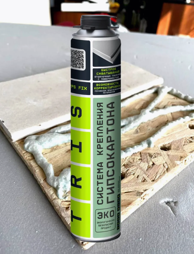 Клей-пена для гипсокартона GYPS FIX - профессиональный, полиуретановый клей для гипсокартона TRIS предназначен для фиксации листов (гипсокартонных, цементных, магнезитовых, древесных) , а также ГВКЛ, ОСП, ДСП, ЦСП, СМЛ.ПРИМЕНЯЕТСЯ ДЛЯ:-фиксации листов(гипсокартонных, цементных, магнезитовых, древесных), а также ГВКЛ, ОСП, ДСП, ЦСП, СМЛ.-- отделка потолков-- возведение перегородок-- выравнивание стен-- создание архитектурных композиций (арок, коллон, принтусов, полок)-- ремонт, уже имеющихся конструкций-- создание рельефа-- для работы с гипсовой лепниной, декоративной плиткой под камень и прочими изделиями, в основной состав которых входит гипсСОСТАВ: 4,4-дифенил метан динзоционат, диметиловый эфир, пропан-бутан, полиольный компонент. 790 г