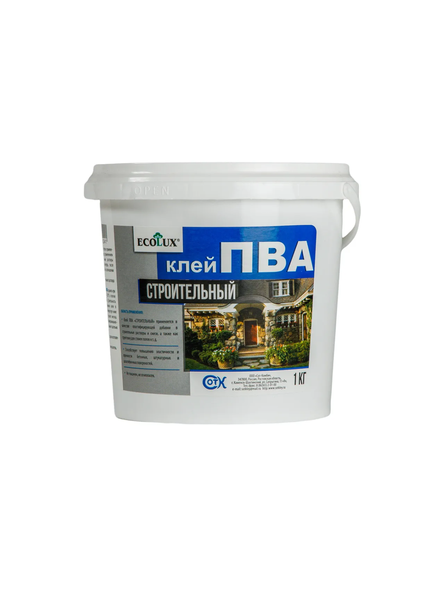 Клей ПВА строительный Ecolux предназначен для применения в качестве: