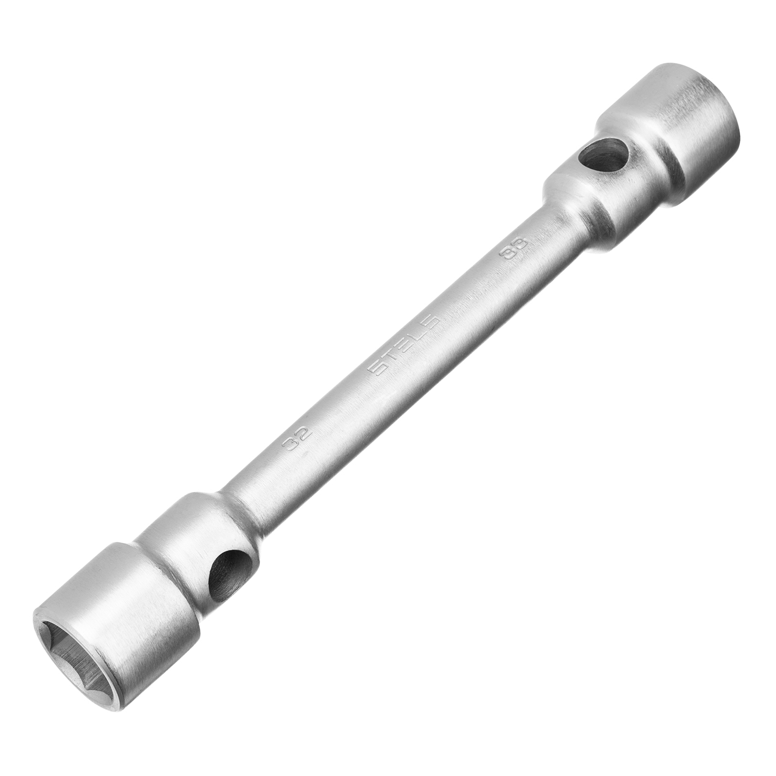 Двухсторонний баллонный ключ Stels 14297, 32 х 33 мм, толщиной 26 мм и длиной 350 мм, используется для шиномонтажных работ на грузовом транспорте и автобусах. Две несъемные торцевые шестигранные головки подходят под крепеж 32 и 33 мм. Инструмент применяется на станциях техобслуживания.