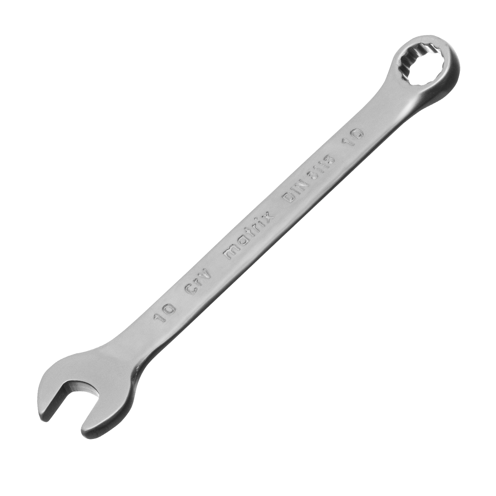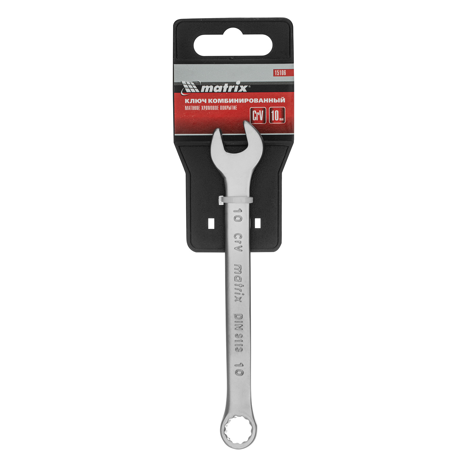 Комбинированный ключ Matrix 15106 размером 10 мм, из стали CrV, с покрытием «матовый хром», пригодится во время ремонтных работ дома или в гараже. С его помощью можно быстро монтировать и демонтировать крепежные элементы. Угол наклона кольцевого зева относительно плоскости инструмента составляет 15°, поэтому ключом удобно работать в труднодоступных местах.