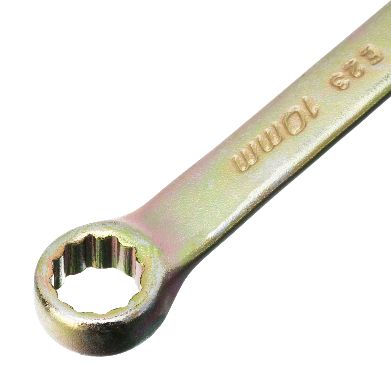Комбинированный ключ Сибртех 14976, покрытый желтым цинком, предназначен для слесарно-монтажных работ с резьбовыми соединениями размером 10 мм. Наличие рожкового и кольцевого зева делает ключ универсальным. Накидная головка с 12-гранным профилем надежно удерживает крепеж, уменьшая риск его деформации. Ключ будет полезен при проведении строительных и ремонтных работ, пригодится для сборки и разборки оборудования, а также необходим в быту.