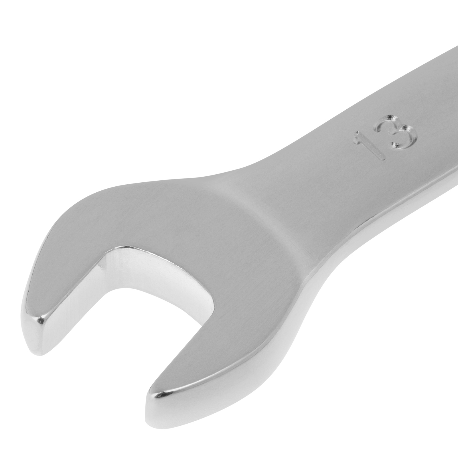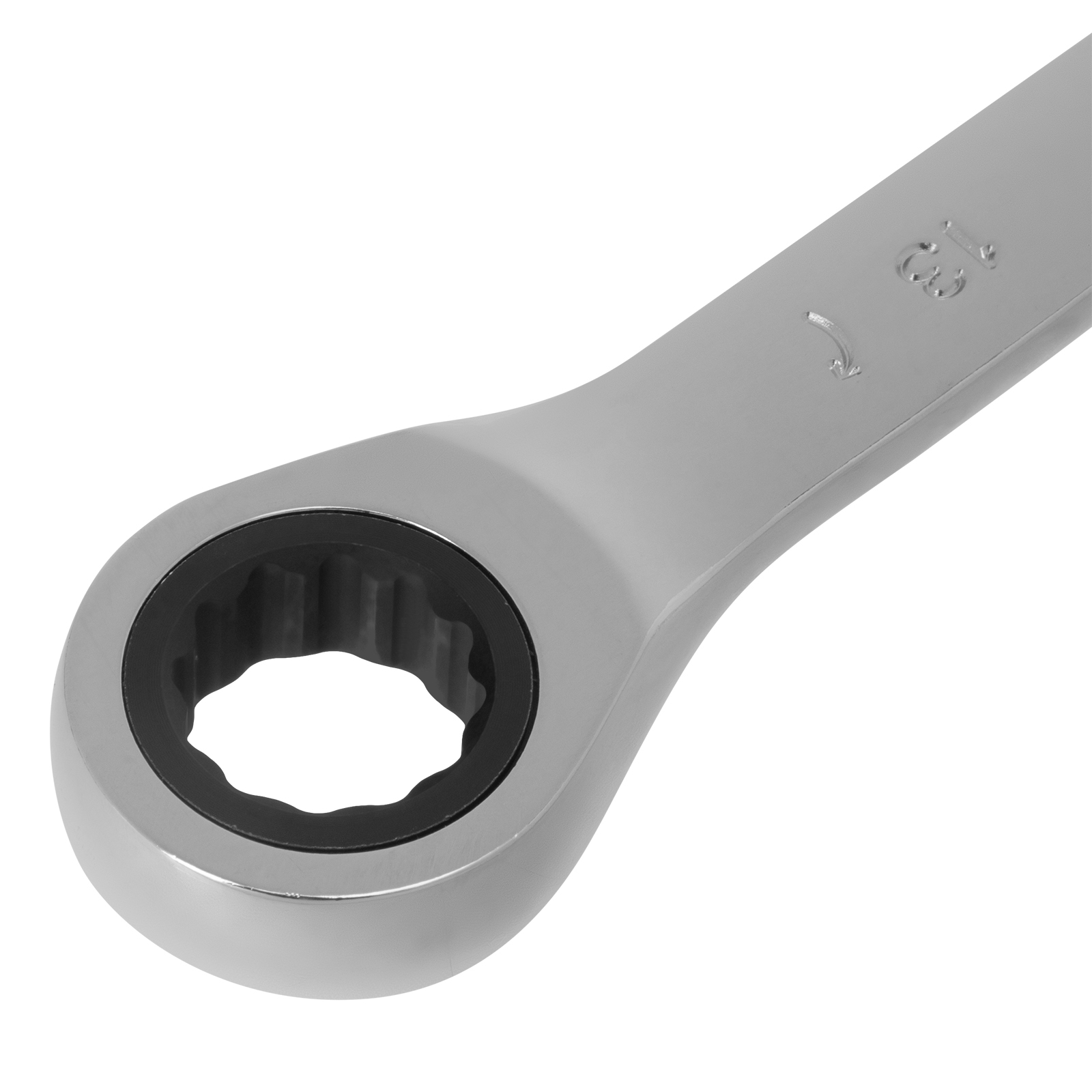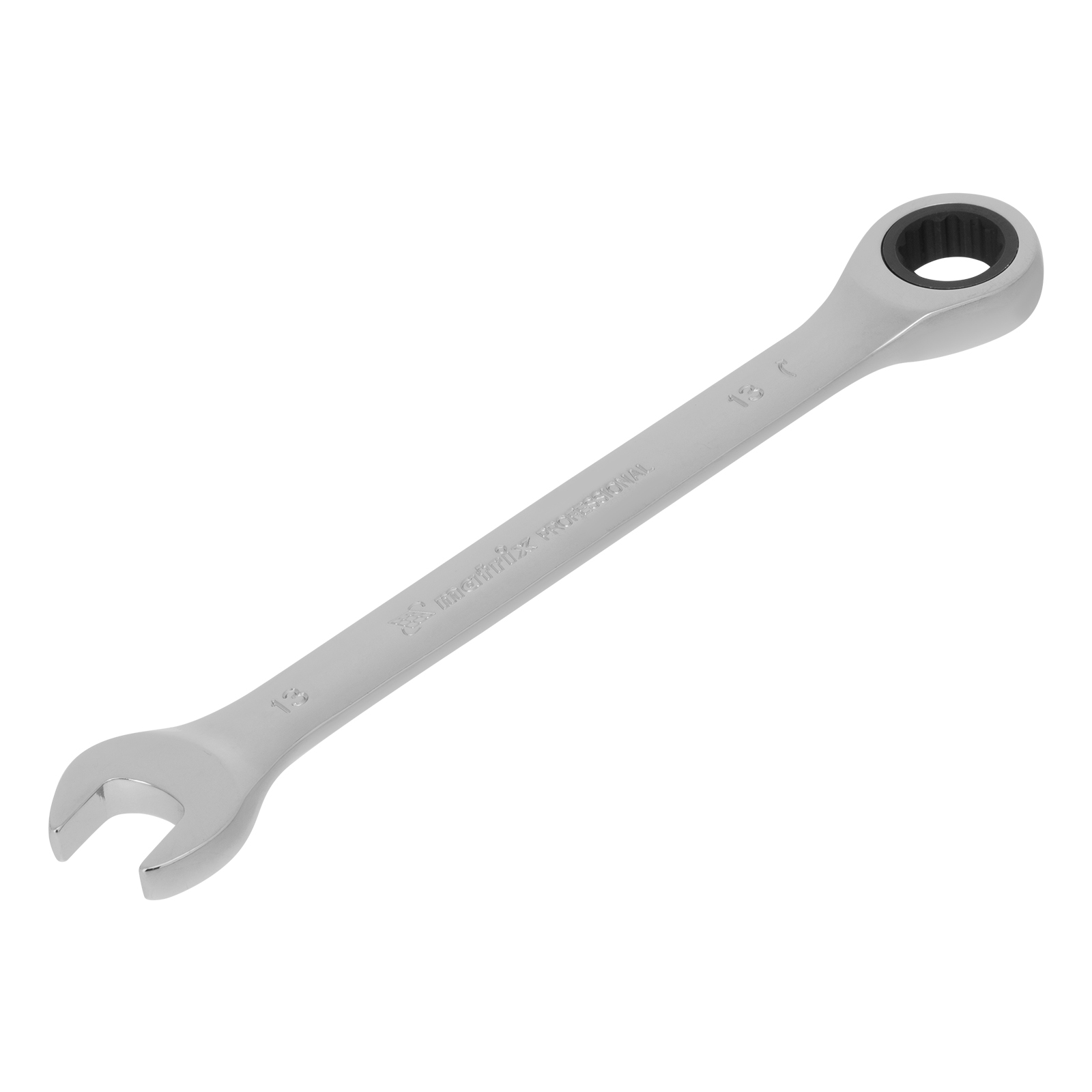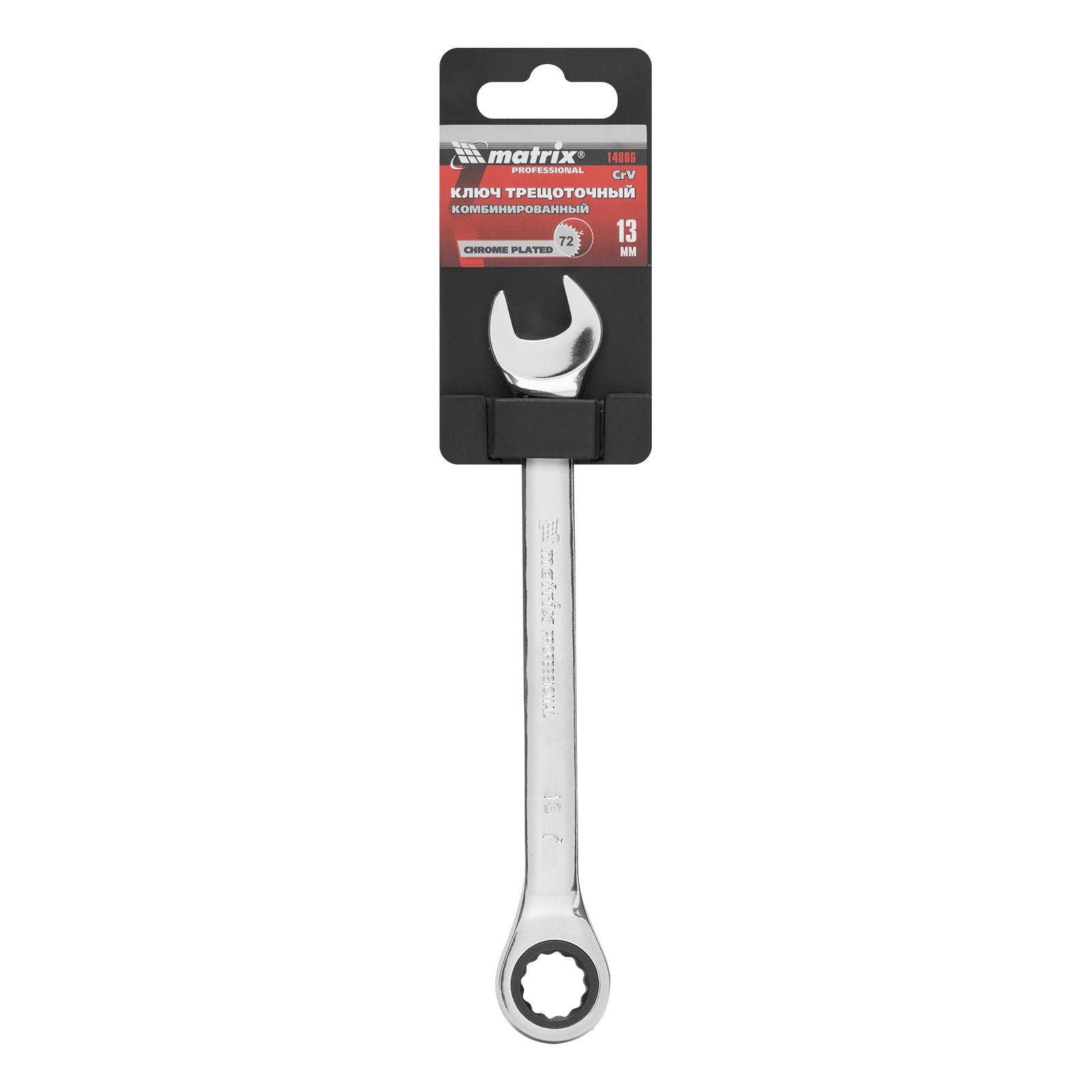 Комбинированный трещоточный ключ Matrix 14806 из стали CrV, с покрытием «зеркальный хром», размером 13 мм, позволяет быстро откручивать и закручивать болты и гайки. Рожковую часть удобно использовать там, где нет возможности полного охвата детали, а трещоточный механизм повышает удобство работы в труднодоступных местах.