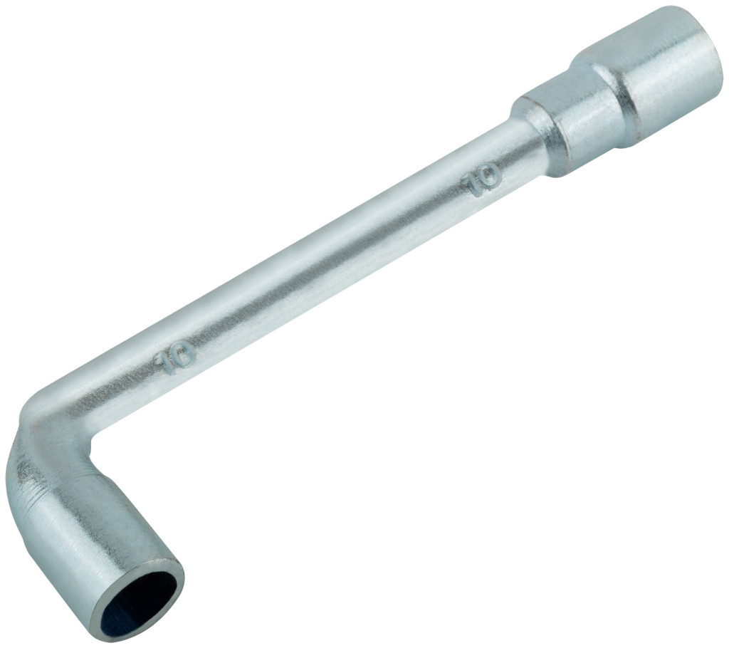 Ключ торцевой L-образный двусторонний со сквозным отверстием предназначен для работ с крепежом в труднодоступных местах. Отверстие в ключе позволяет скручивать гайки с длинных шпилек. Ключ изготовлен из качественной инструментальной стали, что обеспечивает износостойкость и долгий срок службы инструмента.