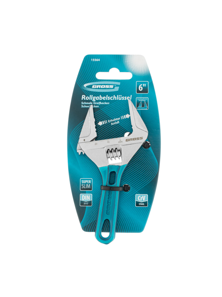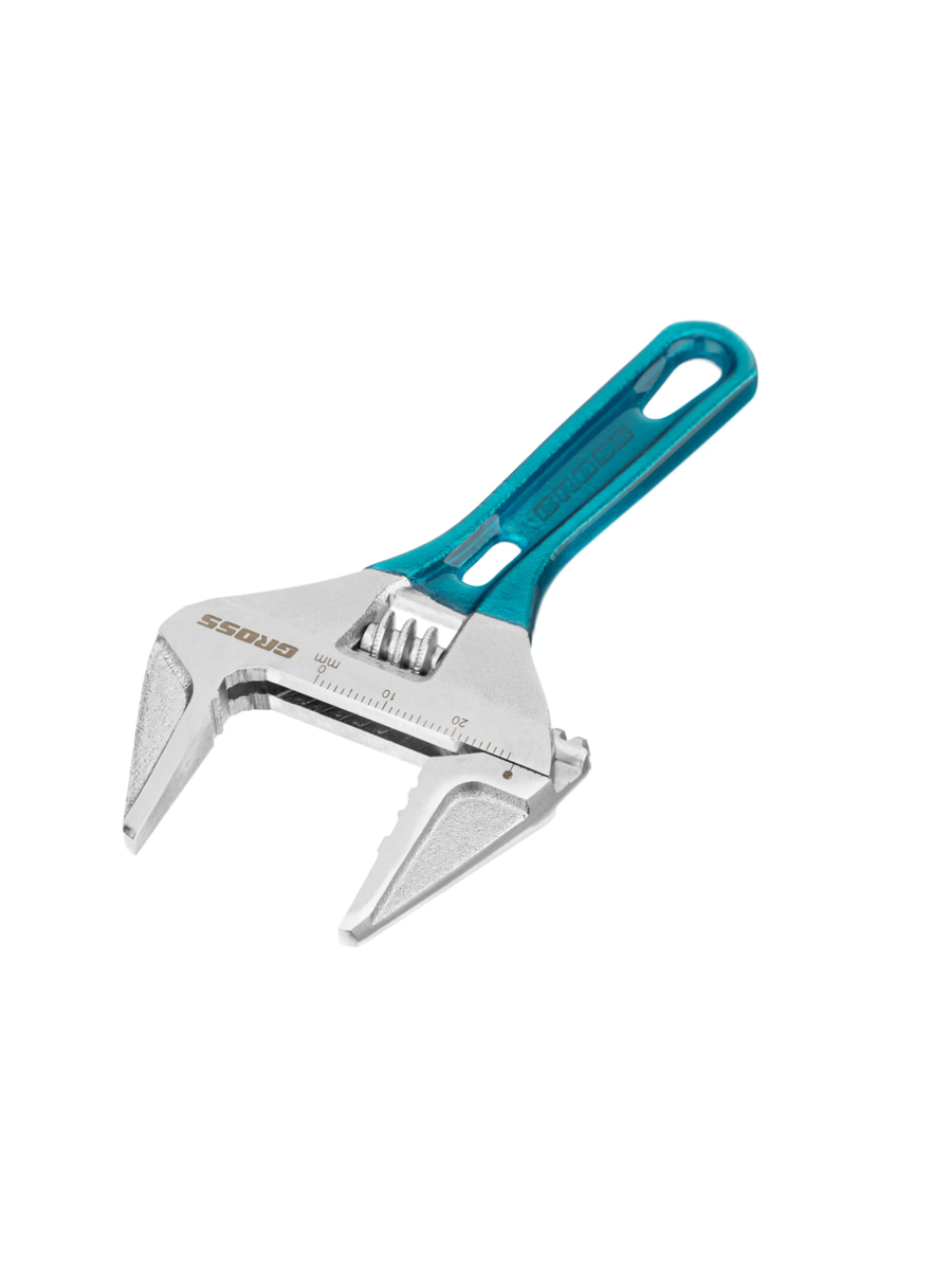 Разводной ключ Gross 15564 длиной 120 мм, из стали CrV, с укороченной ручкой и диапазоном раскрытия зева до 28 мм, подходит для работы как с мелкими, так и с крупными крепежными элементами. Губки раскрываются на 50% больше, чем у стандартных ключей. Ребристая рабочая поверхность губок обеспечивает надежный захват деталей и повышает точность работы.